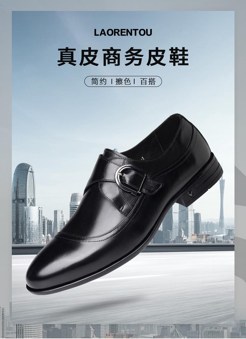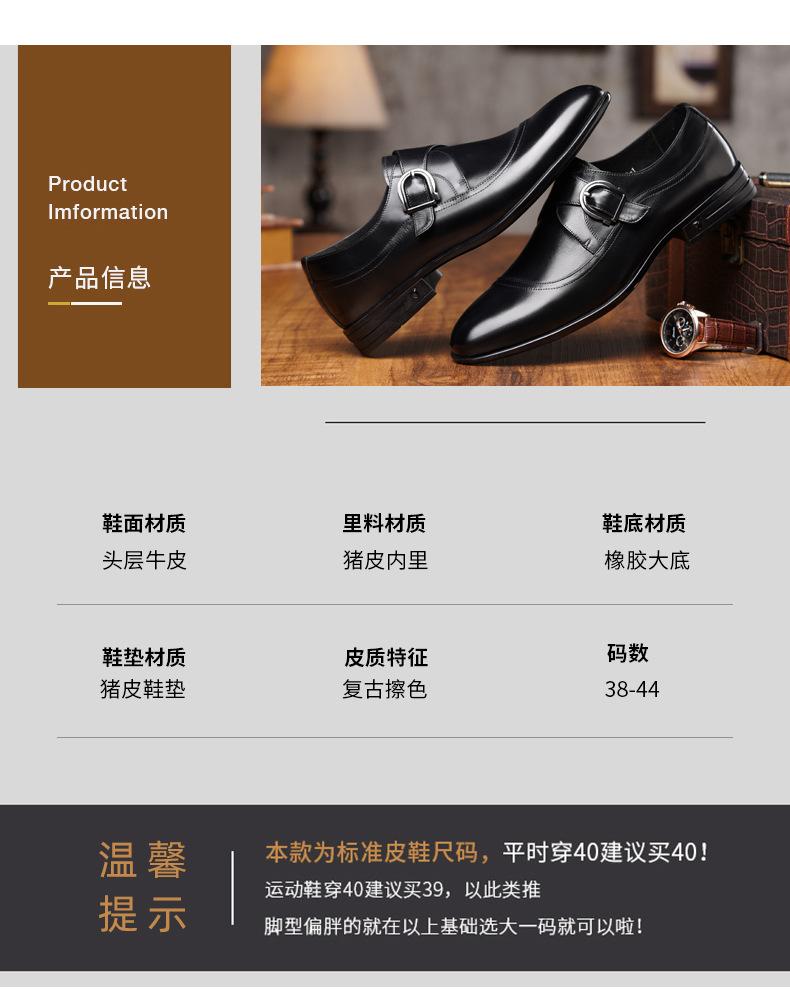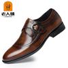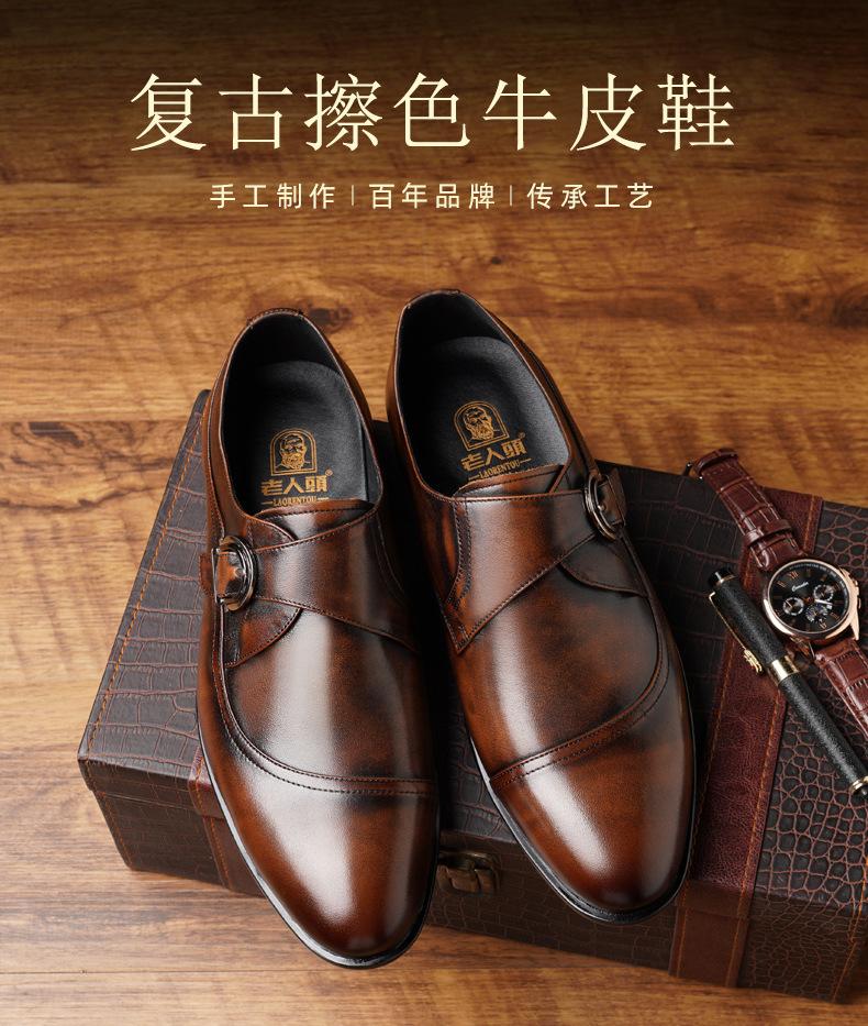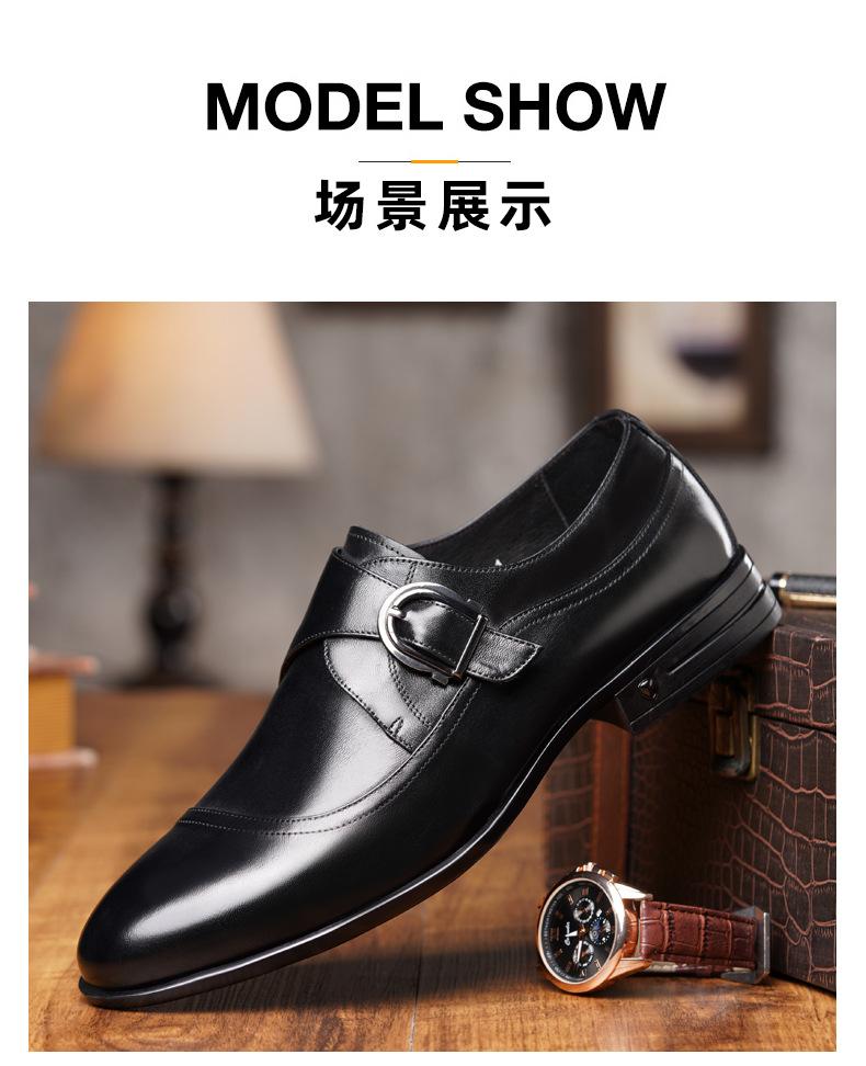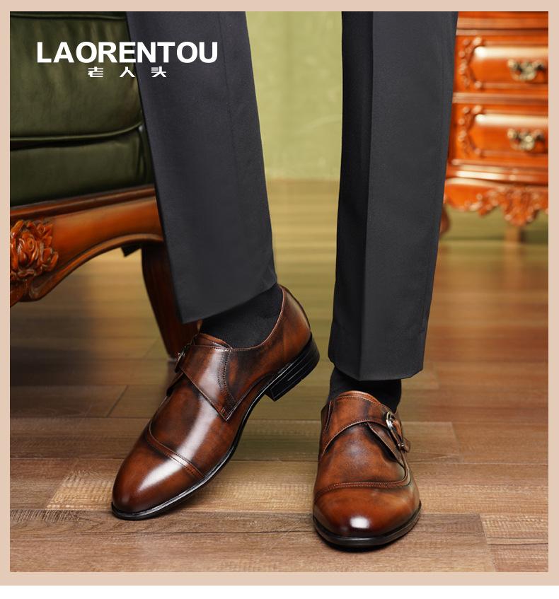 Zapatos de Cuero Formales de Negocios para Hombre Mayor, Zapatos Monk de Hebilla Estilo Británico, Zapatos de Piel de Vacuno para Hombre 22022