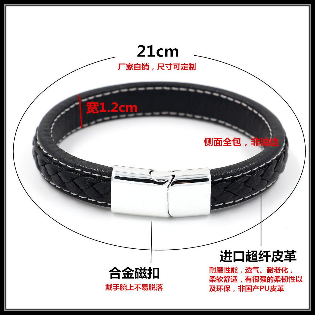 Nombre: Nueva pulsera de cuero europea y americana Material: Cuero de microfibra importado, aleación Artesanía: hecho a mano puro Color: Negro, Marrón Tamaño: Largo 21CM(Ventas propias del fabricante, el tamaño se puede personalizar, por favor indicar al realizar el pedido),Ancho 1,2cm Peso: aproximadamente 17,5 g Embalaje: 1 pieza/bolsa OPP, 12 piezas en una bolsa grande -------------------------------------------------------------------------------------------------------------- Debido a los diferentes métodos de medición, habrá ligeras diferencias en tamaño y peso, lo que no es un problema de calidad del producto.