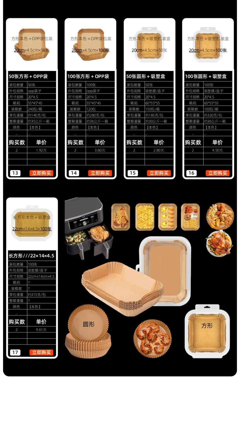 Papel para freidora de aire rectangular Ninja Double Pot Papel especial Papel absorbente de aceite Papel de silicona para aceite Horno de horneado Suministro especial transfronterizo