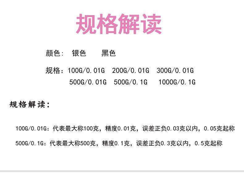 100g/0.01g, 200g/0.01g, 300g/0.01g, 500g/0.01g, 500g/0.1g, 1kg/0.1g
