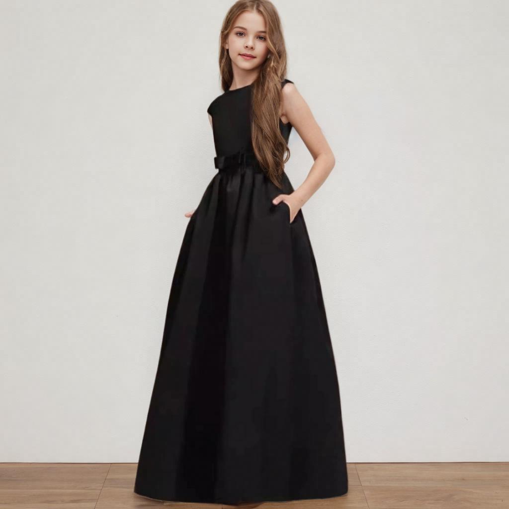 Vestido de Princesa de Satén para Niñas 2025 Nuevo Vestido de Pasarela Aliexpress para Niños Traje de Anfitrión para Actuación de Piano para Niña