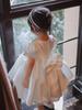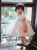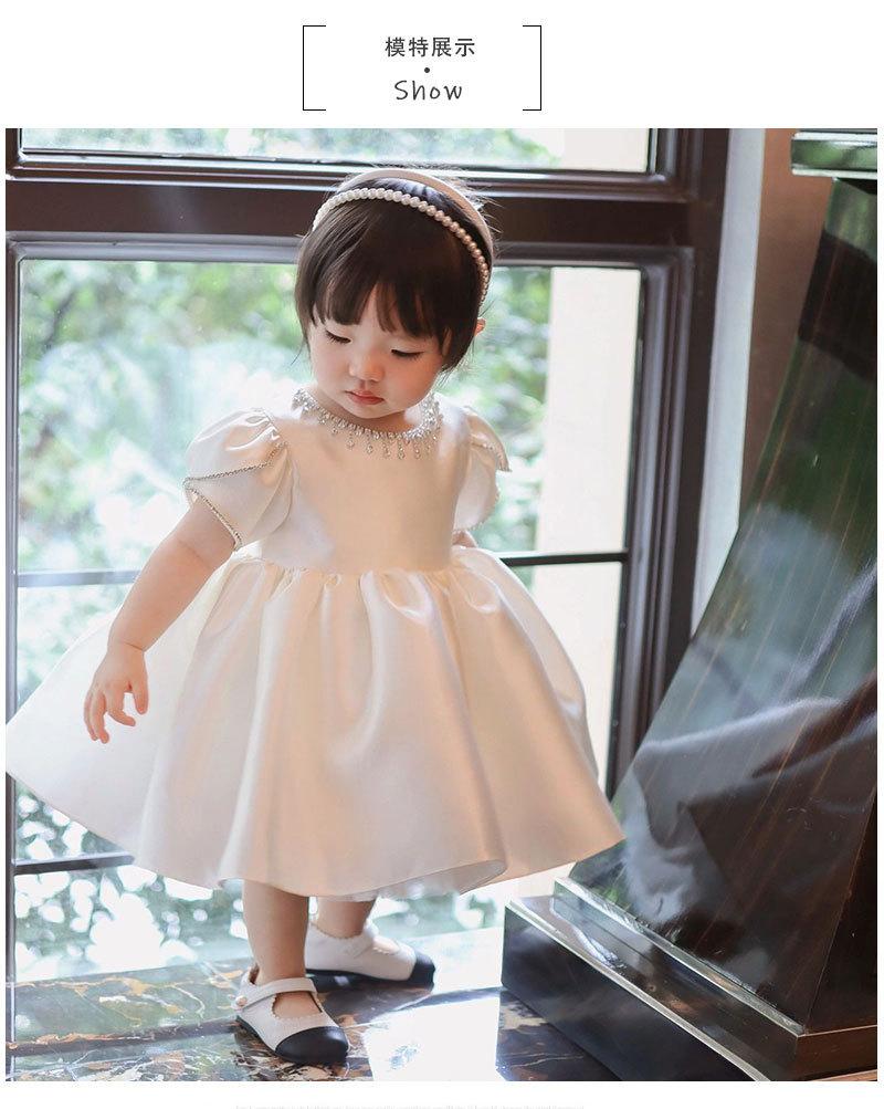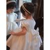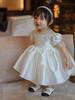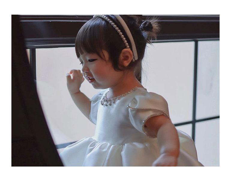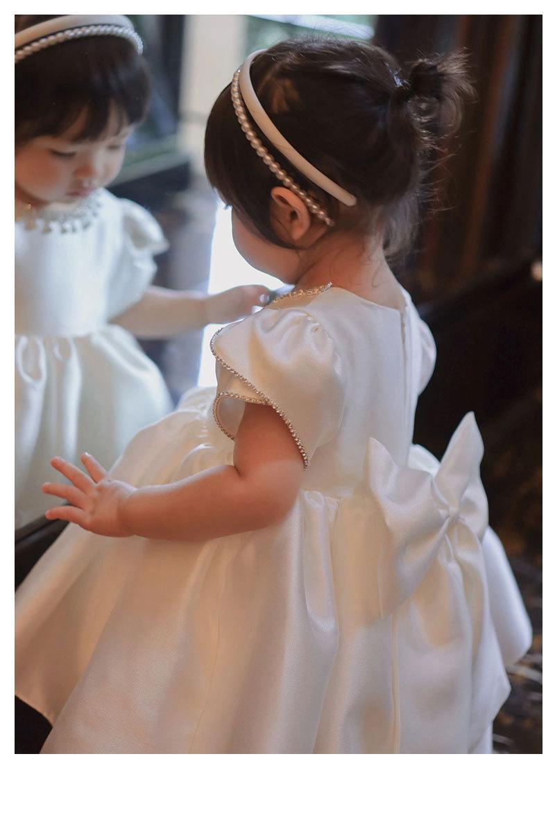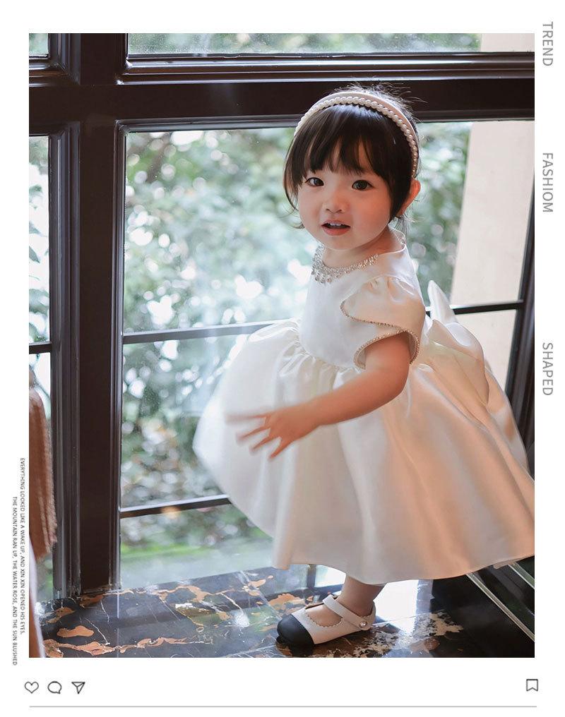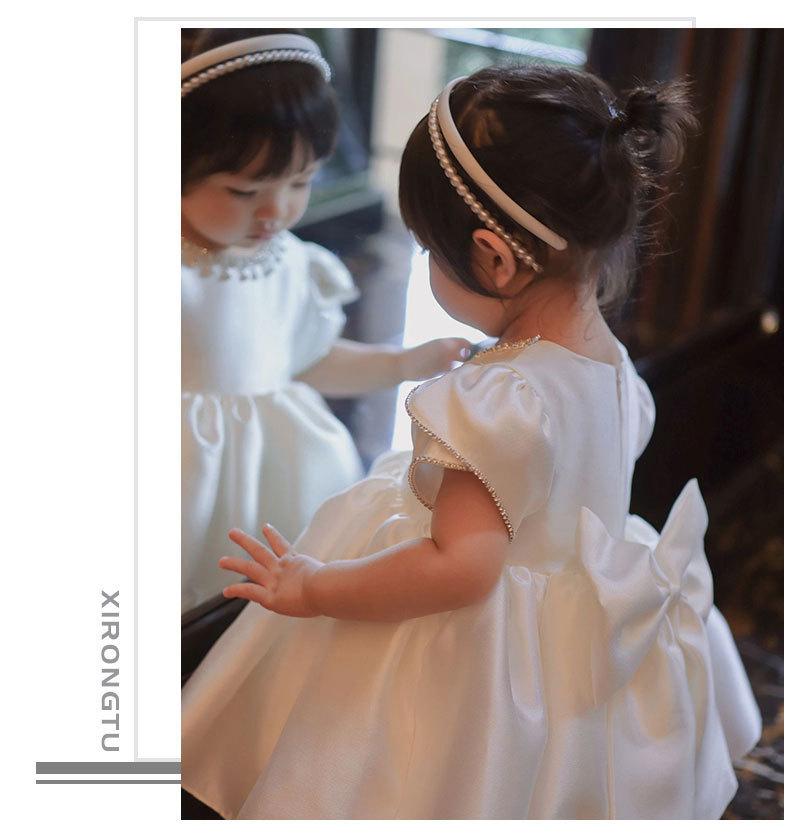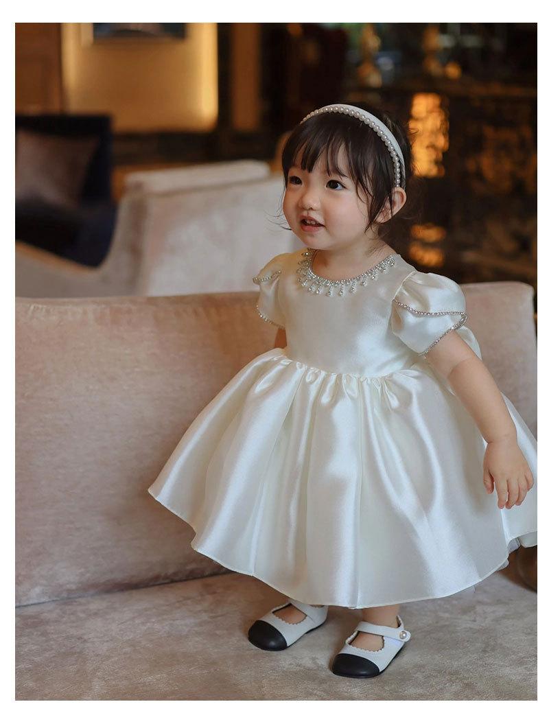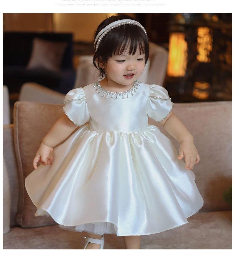 Vestido de princesa para niña de un año, elegante vestido de pontón de satén blanco para fiesta de bodas y fiestas de niñas.