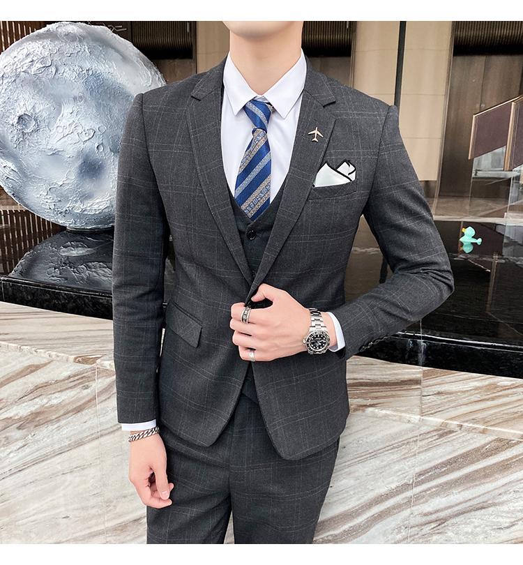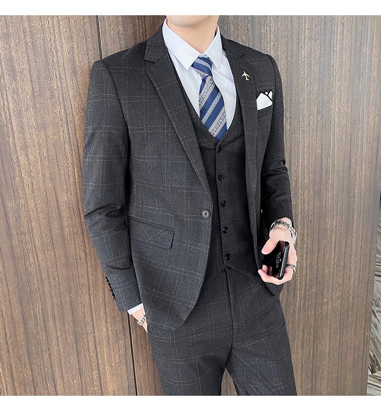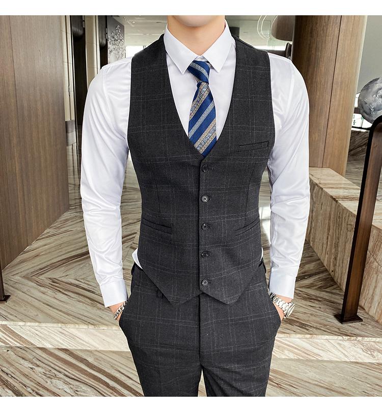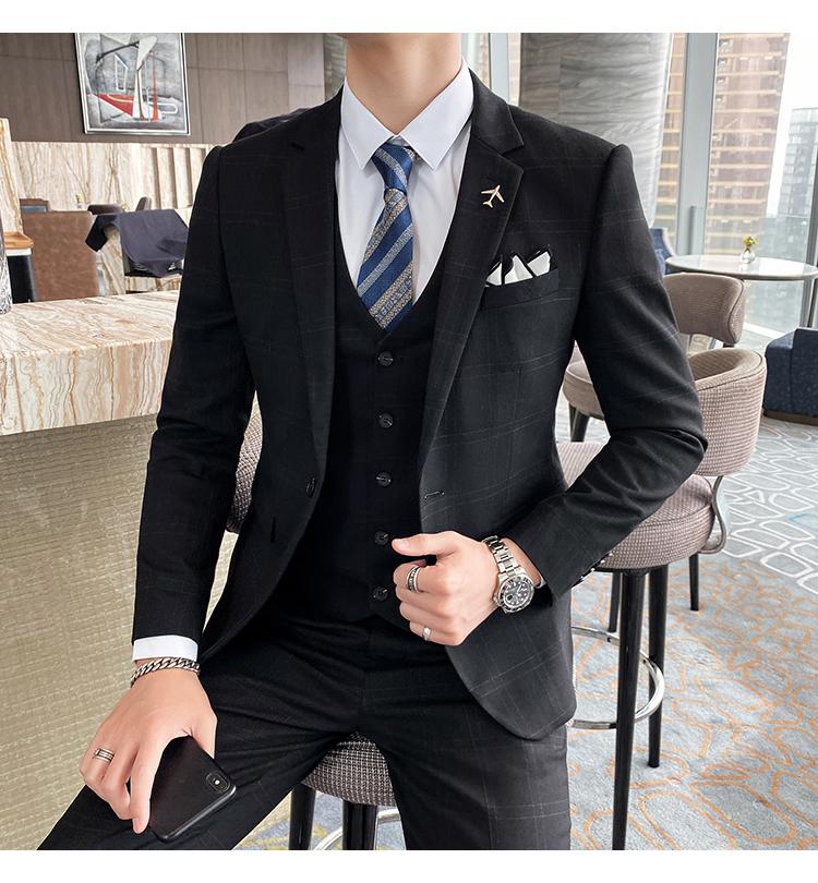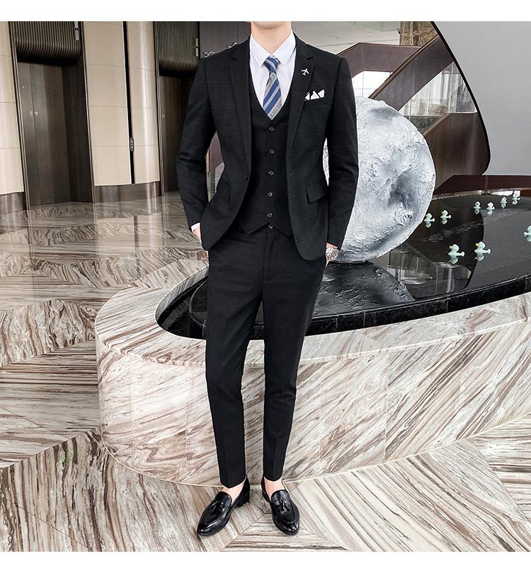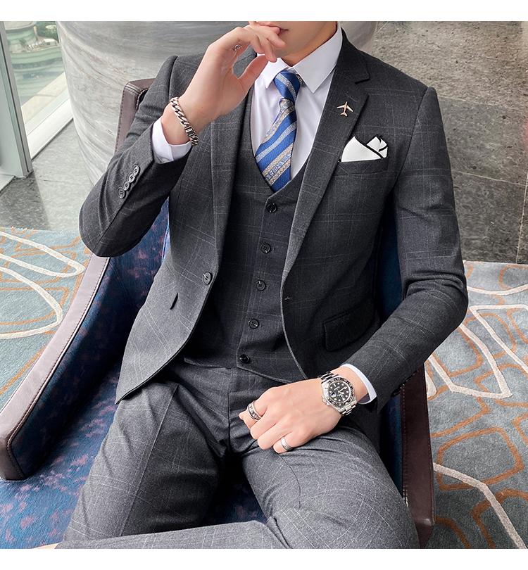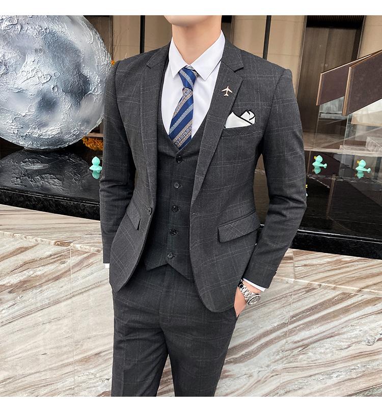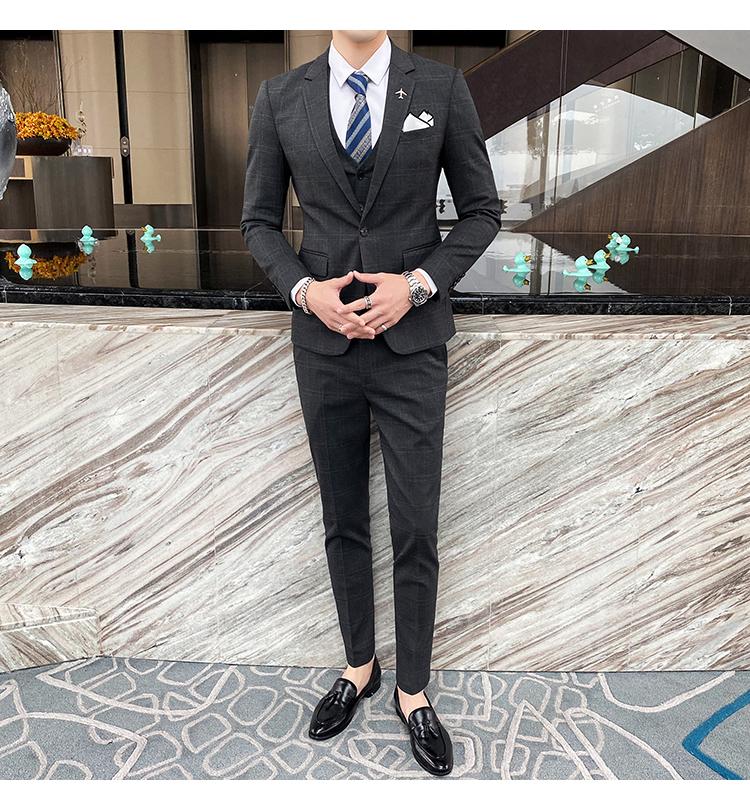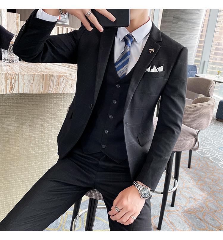 Traje de negocios a cuadros, invierno 2020, nuevo, ajustado, informal, de tres piezas, para novio, vestido de boda
