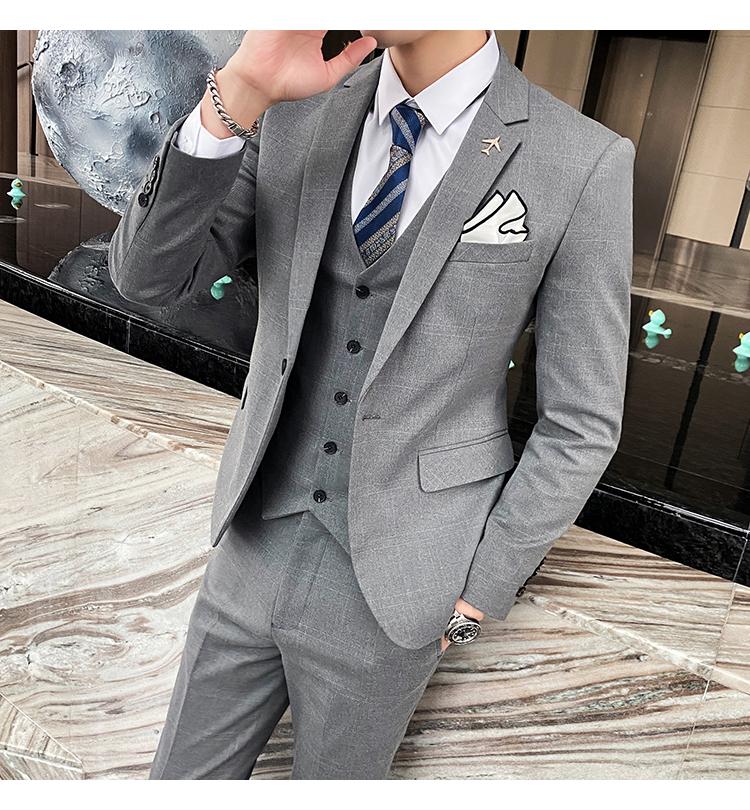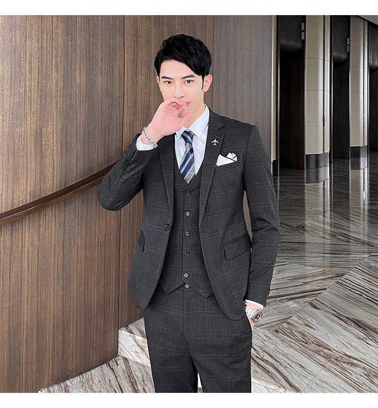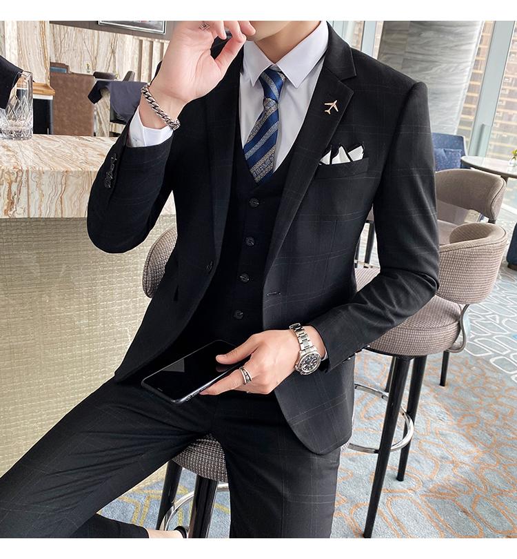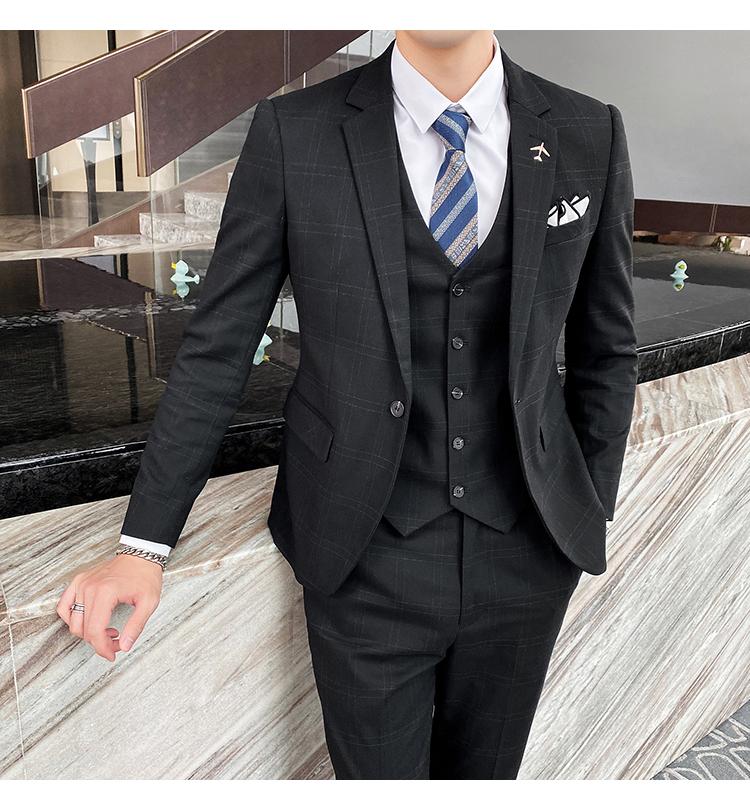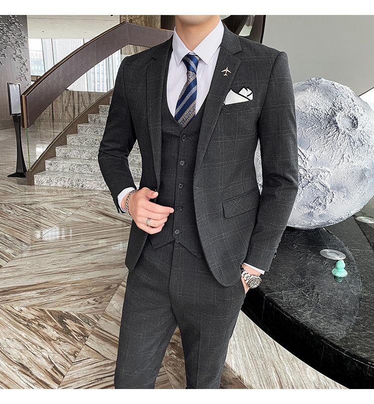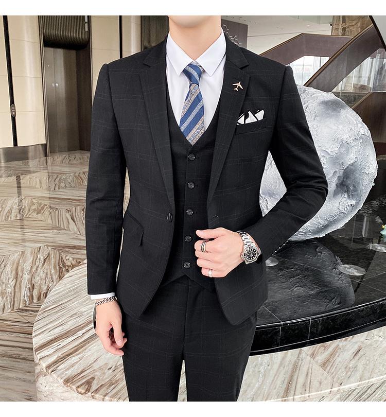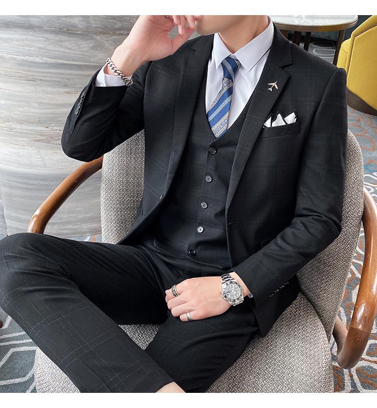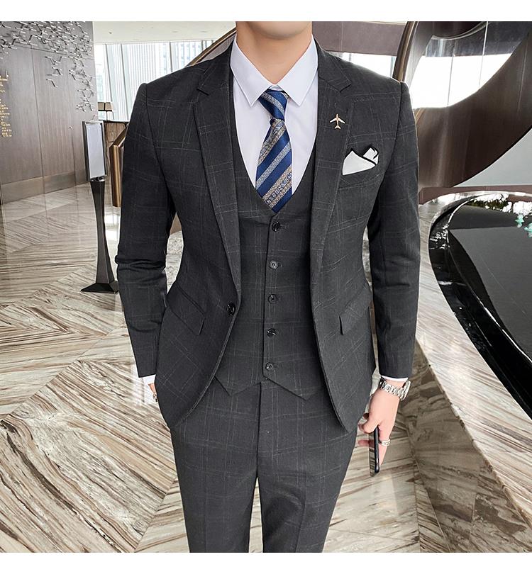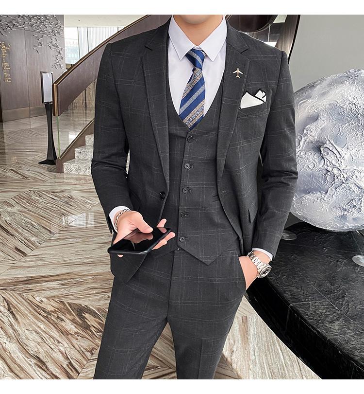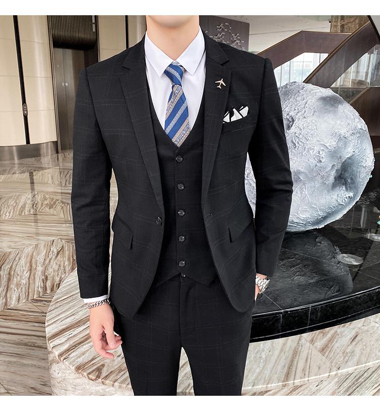 Traje de negocios a cuadros, invierno 2020, nuevo, ajustado, informal, de tres piezas, para novio, vestido de boda