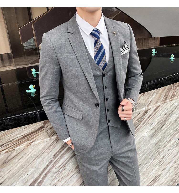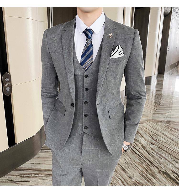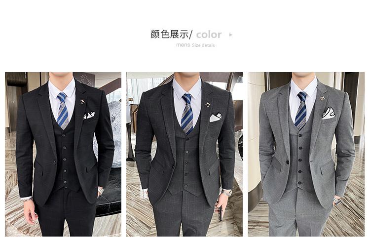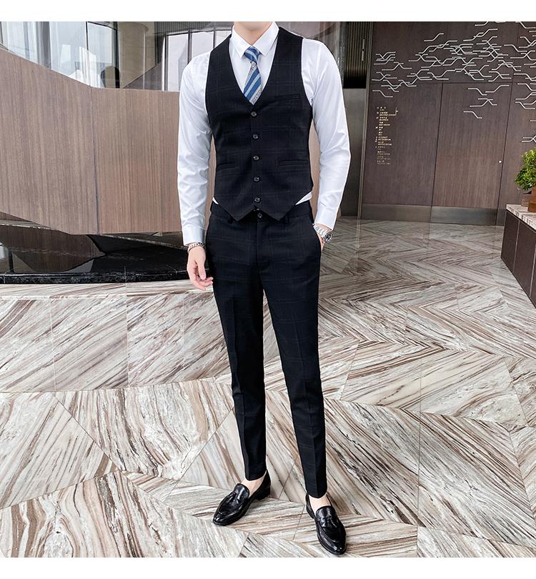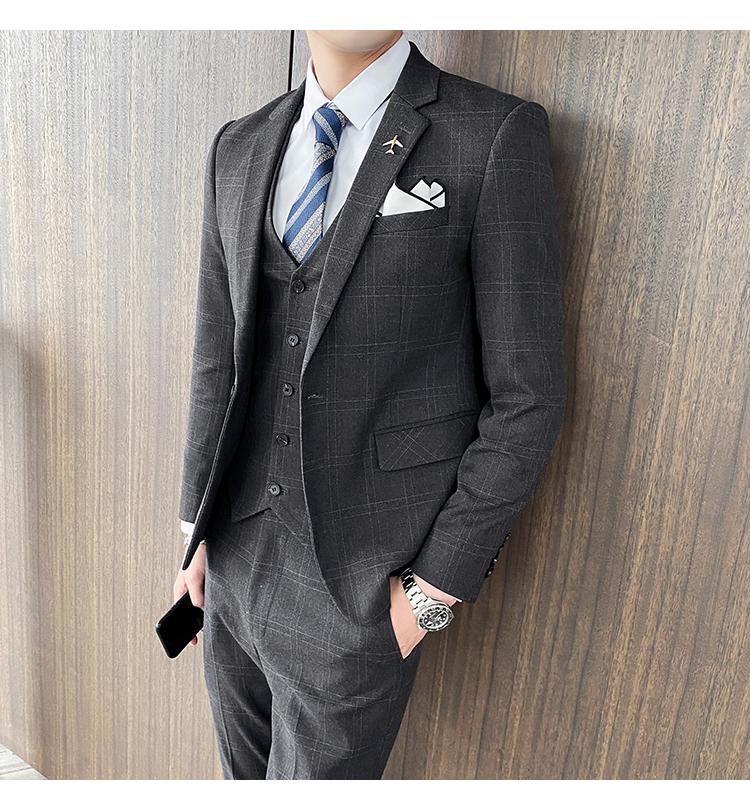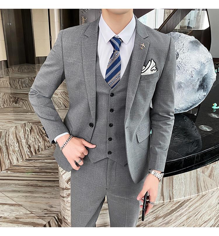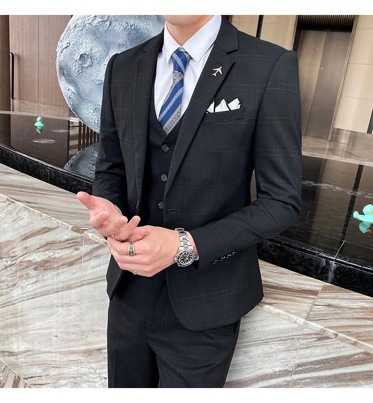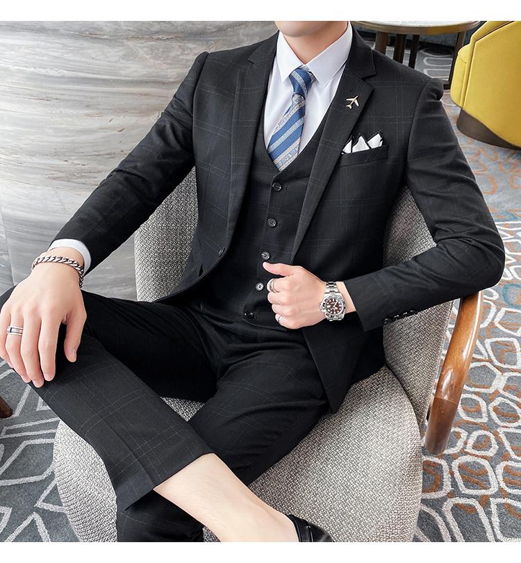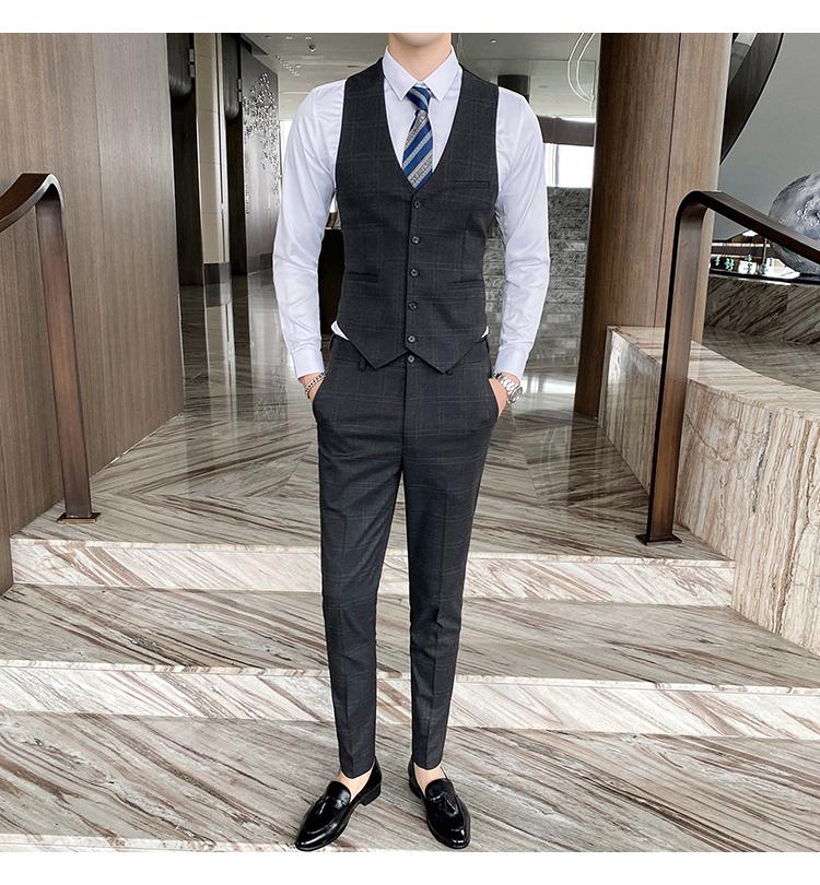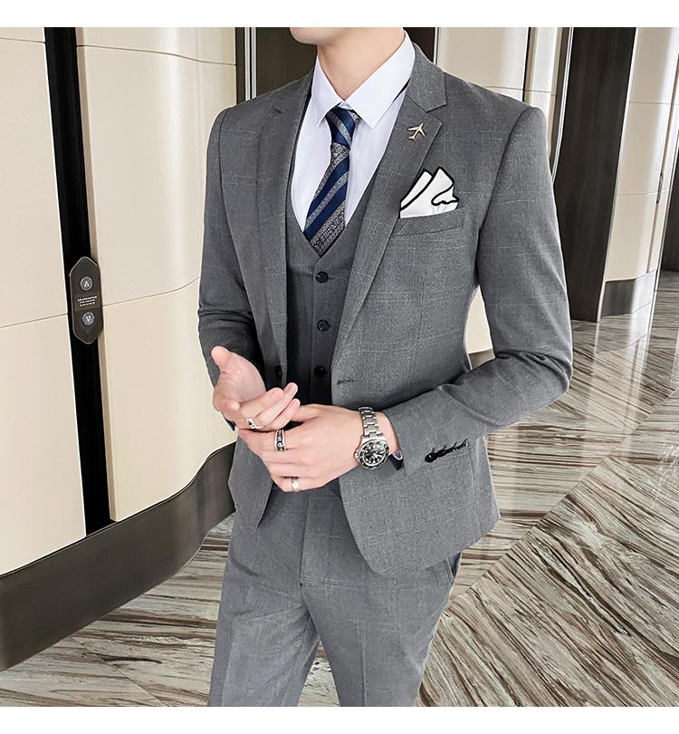 Traje de negocios a cuadros, invierno 2020, nuevo, ajustado, informal, de tres piezas, para novio, vestido de boda