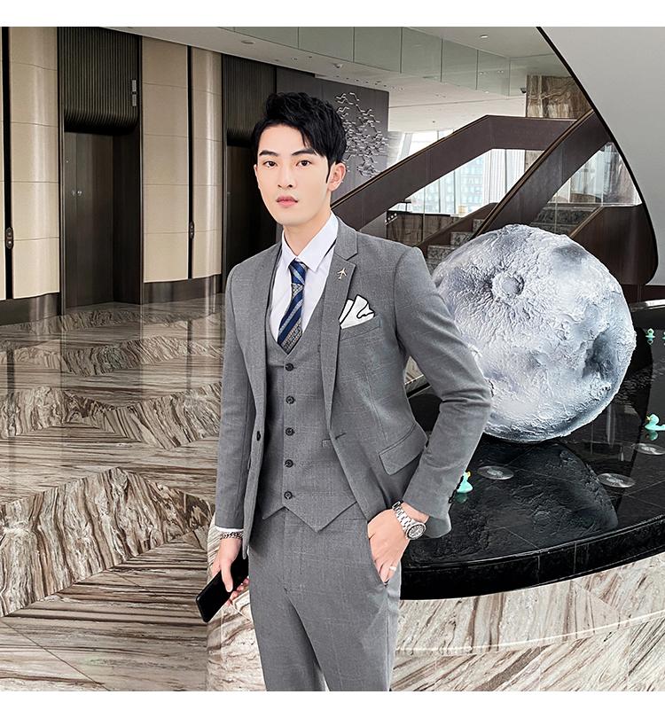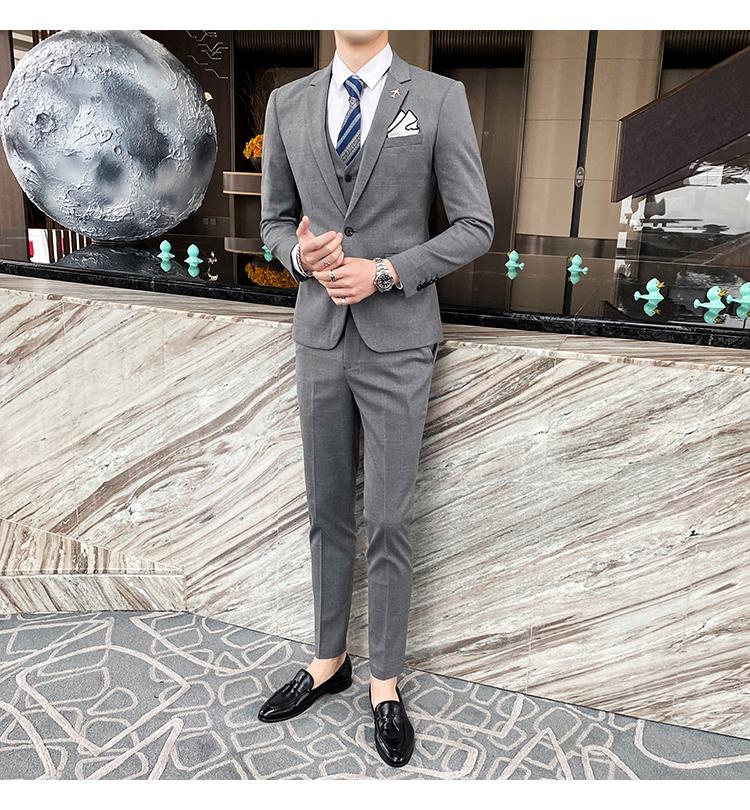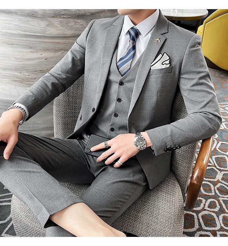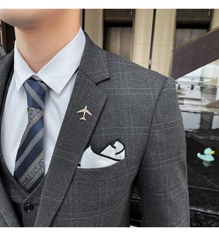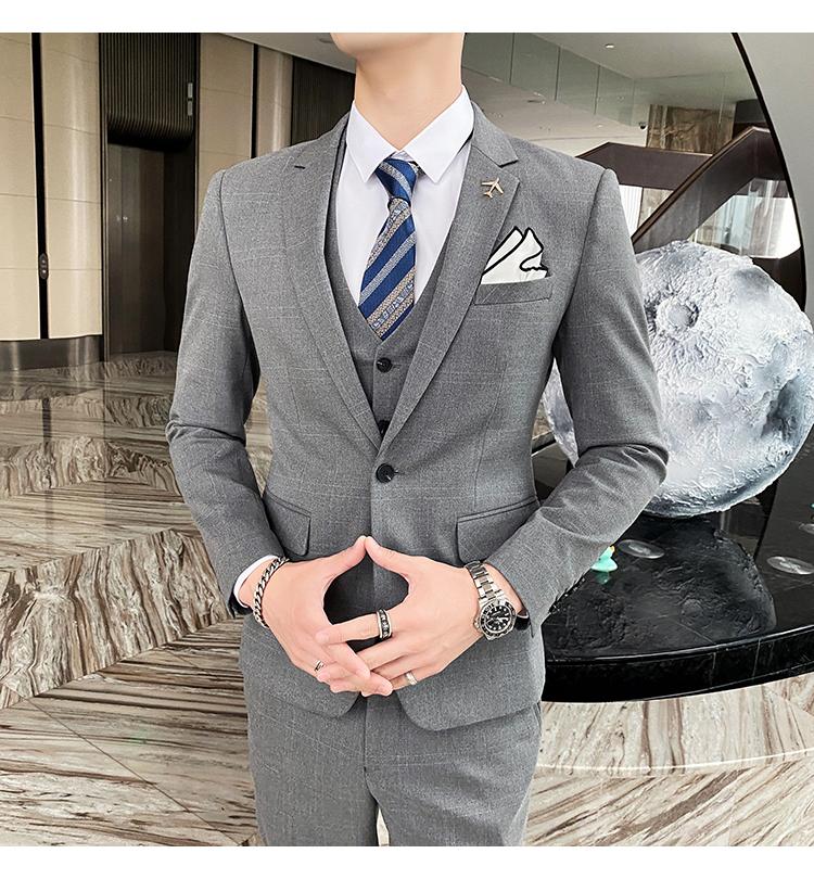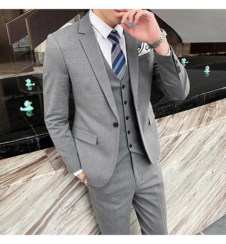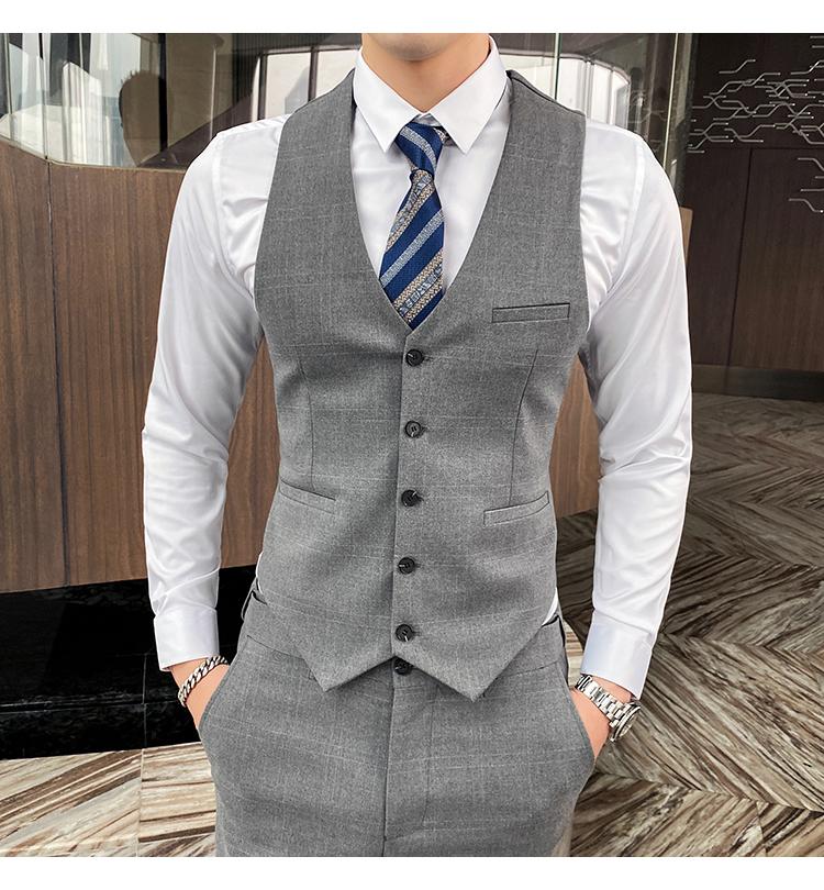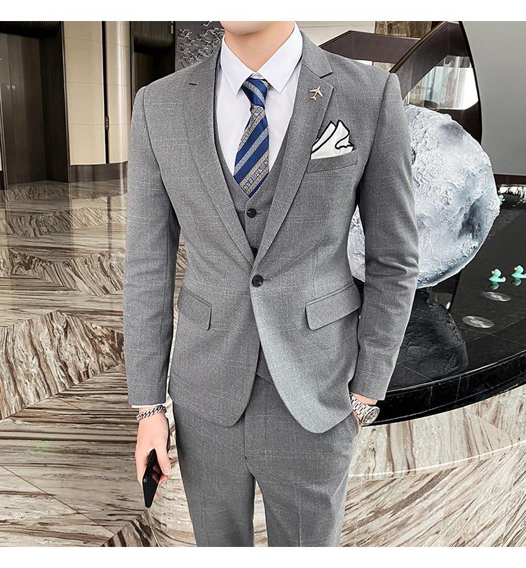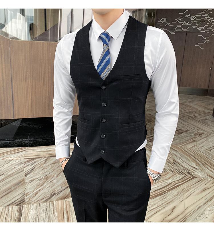 Traje de negocios a cuadros, invierno 2020, nuevo, ajustado, informal, de tres piezas, para novio, vestido de boda