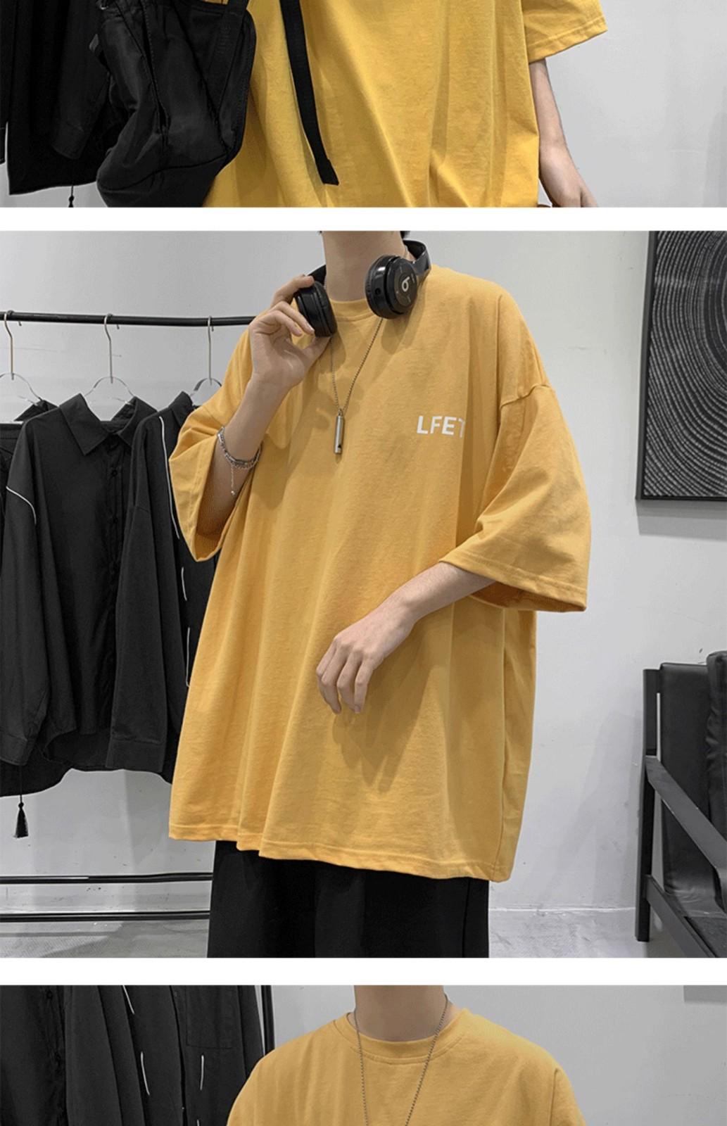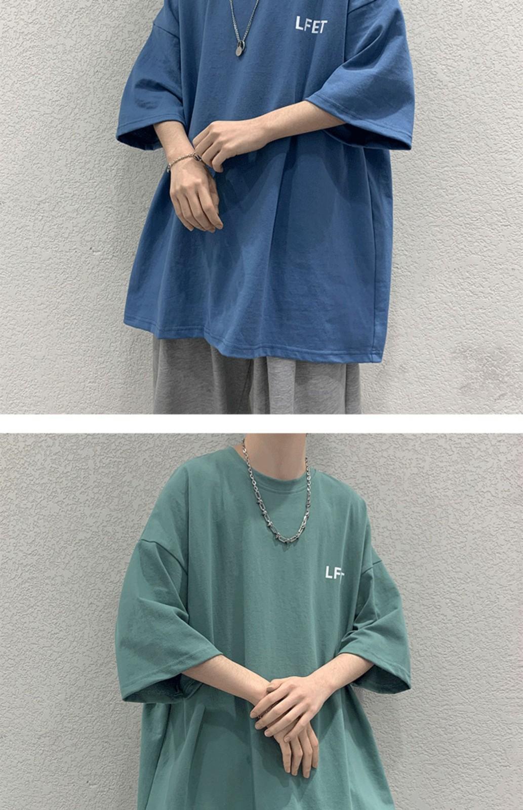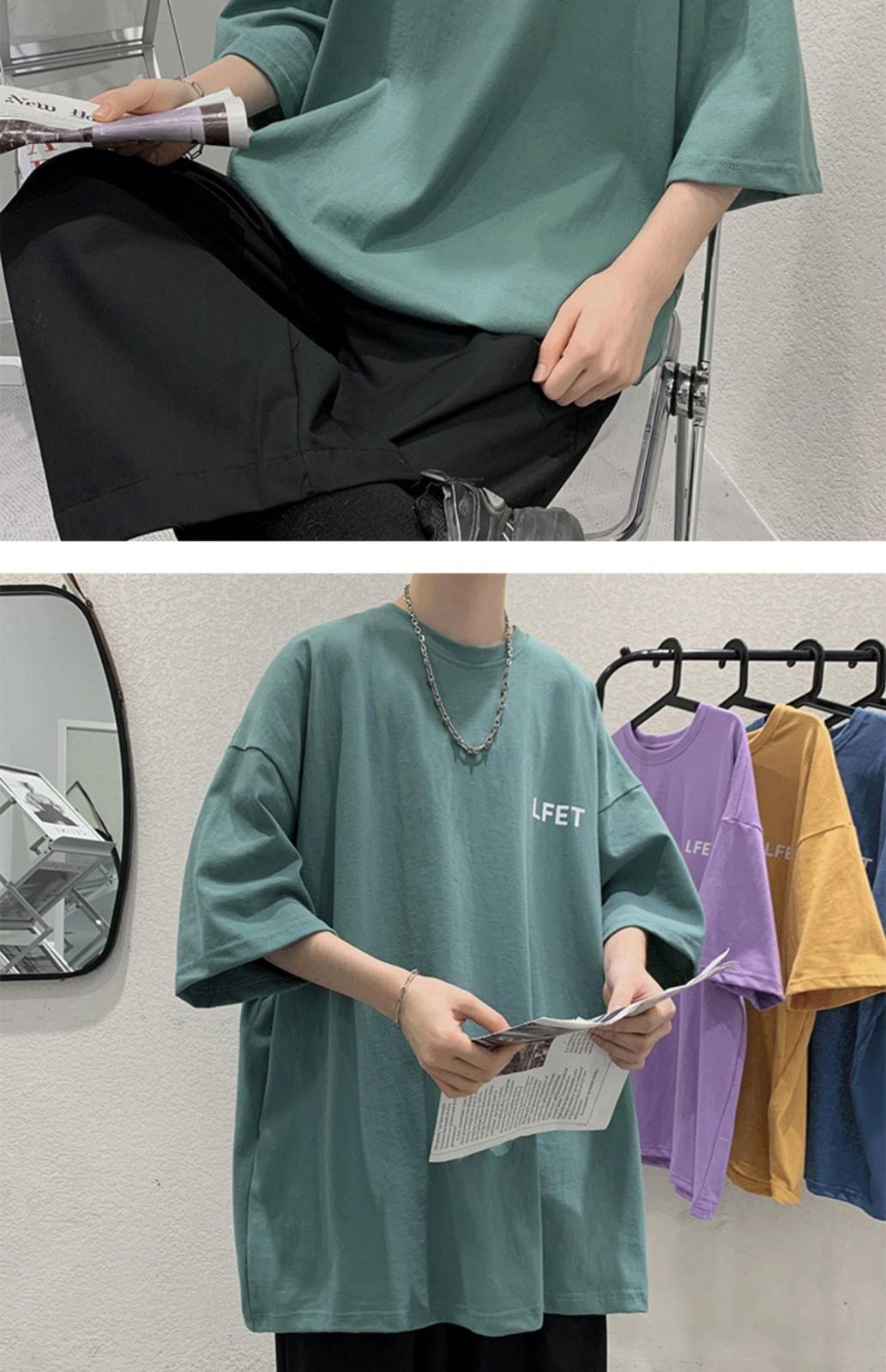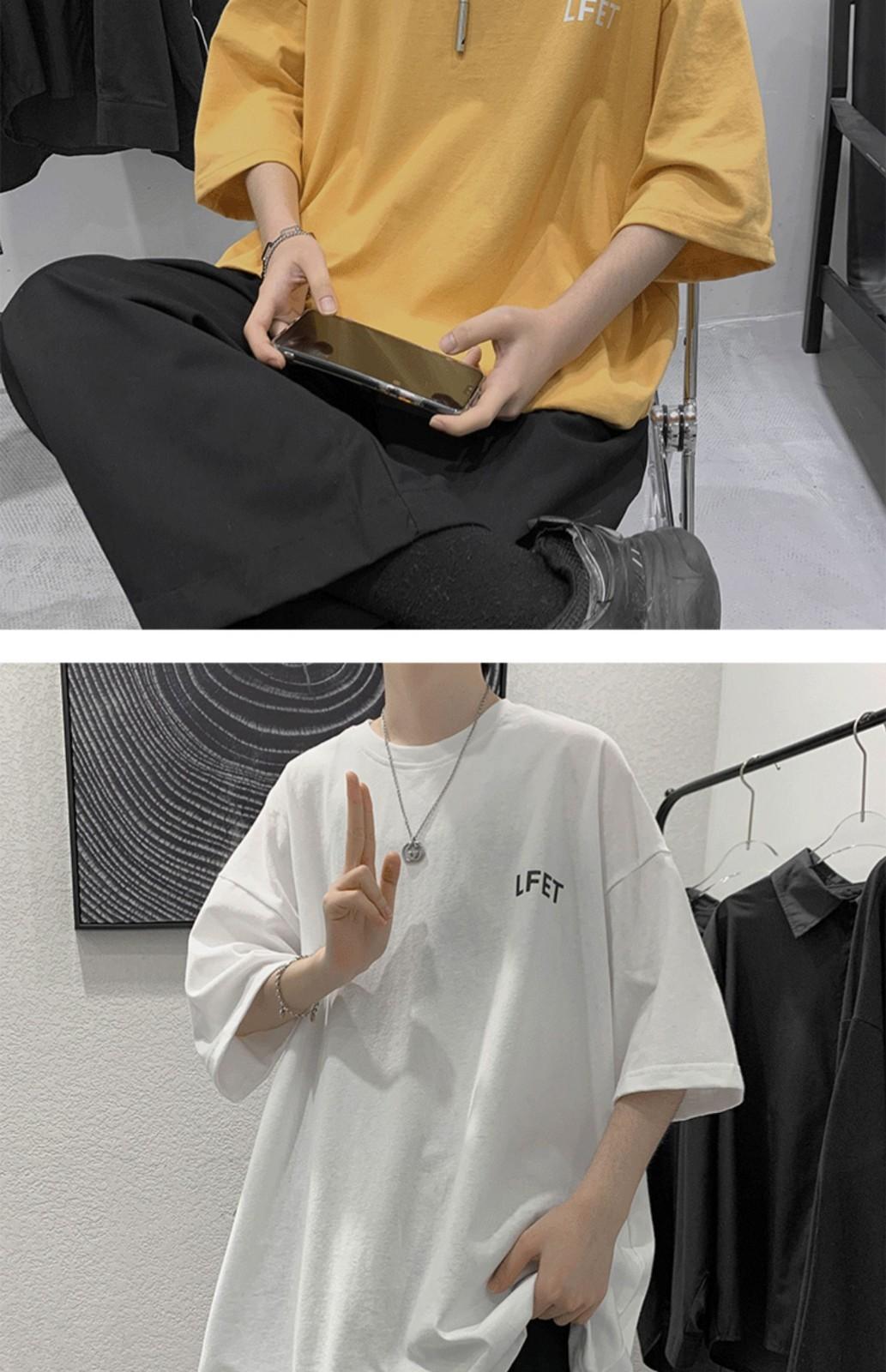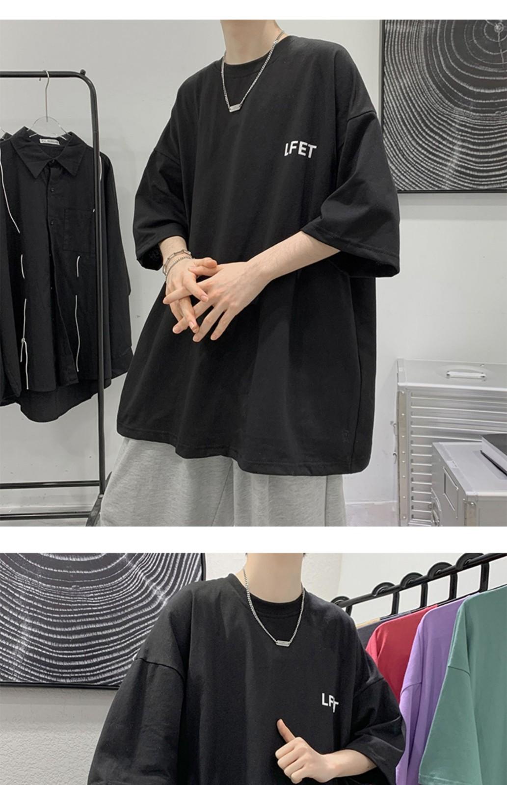 Camiseta de manga corta de verano para hombre, camiseta informal holgada de marca de moda, estilo coreano, elegante, combinable con todo, de media manga.