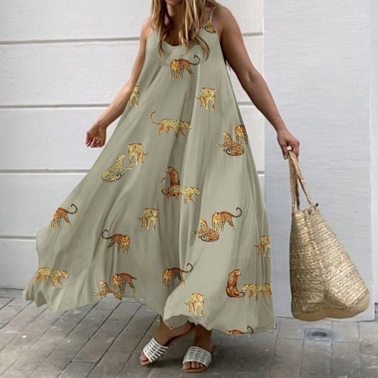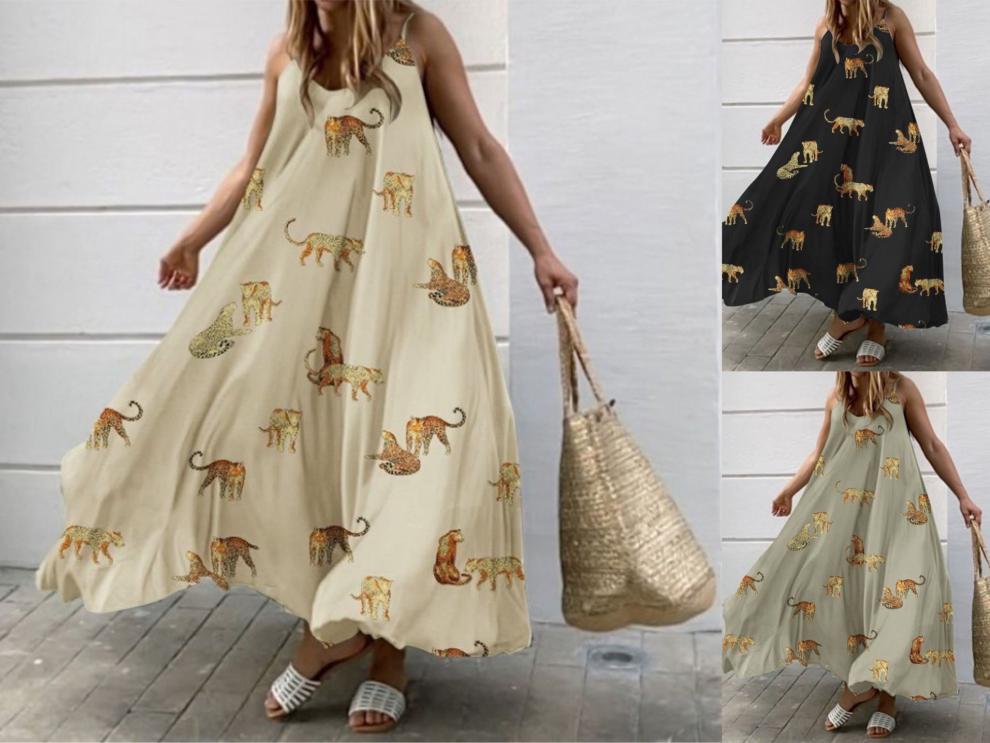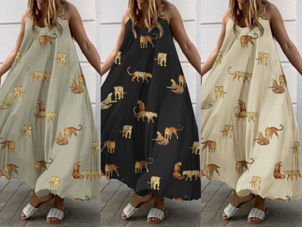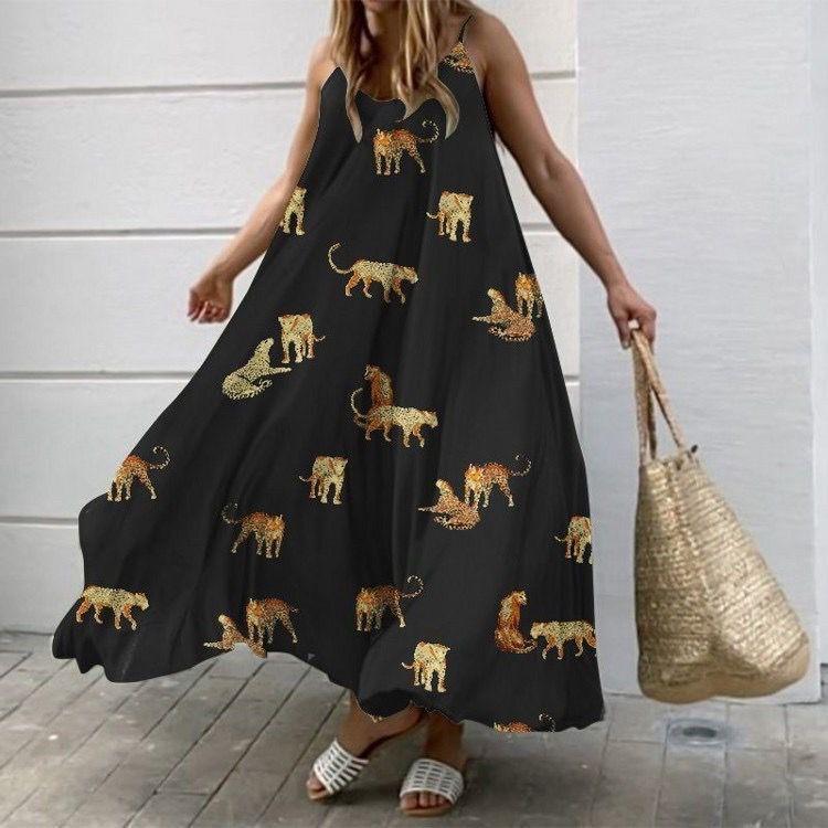 Vestido ajustado en forma de A con estampado animal, estilo europeo y americano, con hebilla ajustable, de AliExpress.