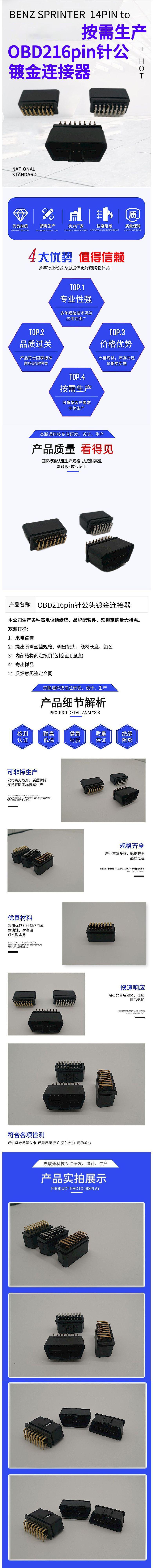 Interfaz de Coche Obd2 16 Pines Pin 90 Grados Doblado a la Derecha Conector Macho Chapado en Oro Enchufe Obd Venta al por Mayor