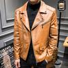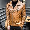 Ropa de cuero para hombre, otoño 2020, chaqueta de cuero PU de motocicleta juvenil de corte entallado coreano, abrigo de solapa de cuero, ropa informal para hombre
