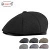 Boina de lana tejida de invierno cálida para hombre de mediana edad y anciano estilo británico gorra con visera costuras juventud sombrero de avance marea