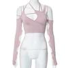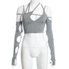Blusa de verano europea y americana para mujer, de color liso, con cuello halter, mangas sin espalda y cuello halter.