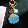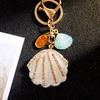 Llavero de coche con forma de concha de mar con incrustaciones de diamantes, bonito colgante de metal para bolso de mujer, llavero, anillo, regalos empresariales transfronterizos.