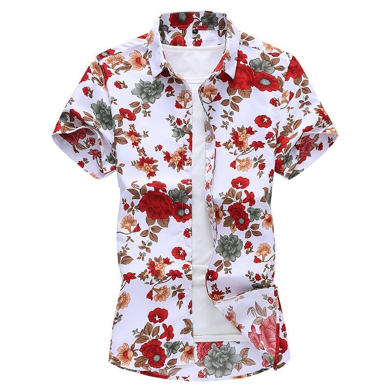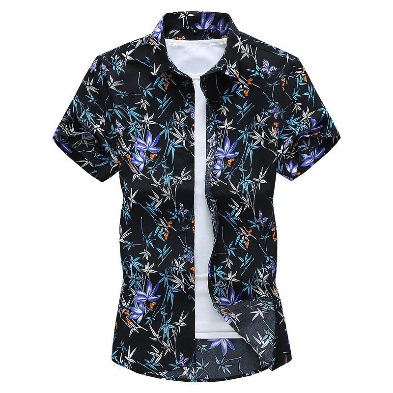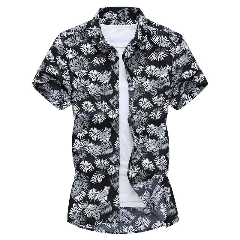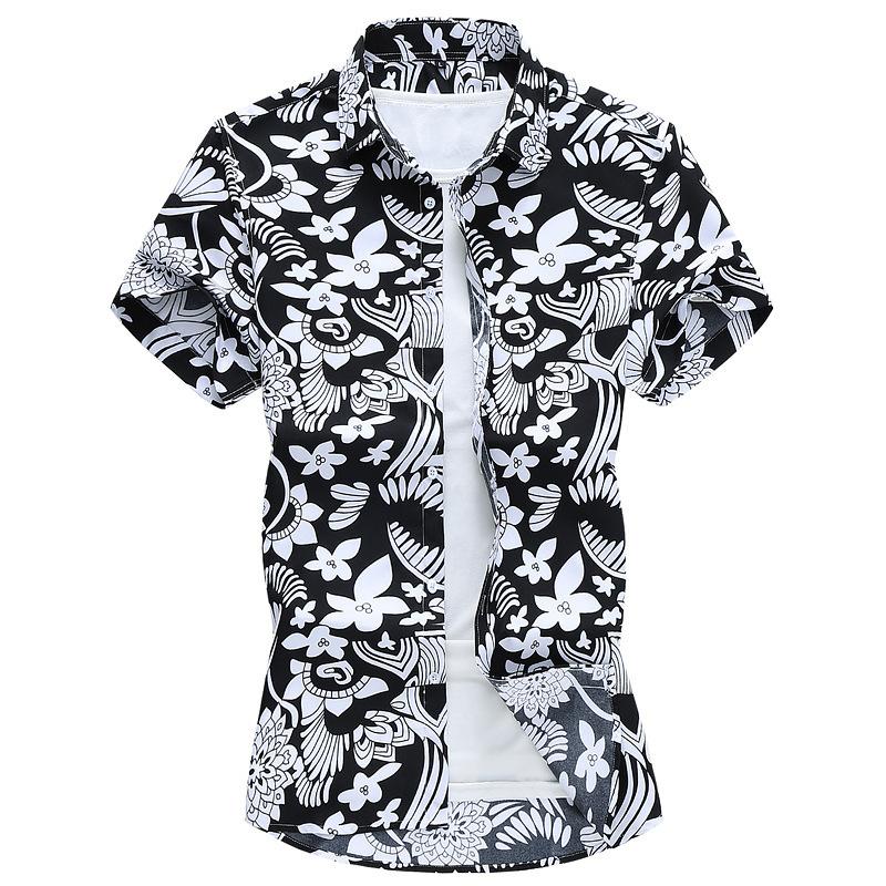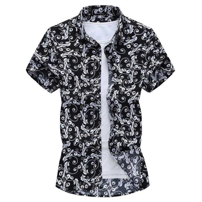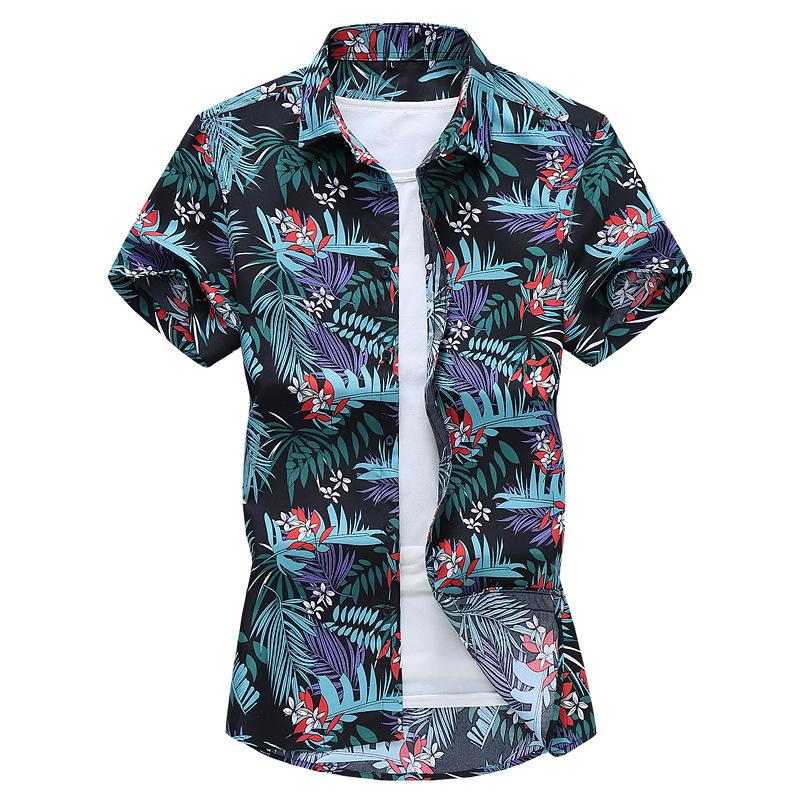 Camisa de manga corta ajustada para hombre, de verano 2024, para playa, informal, de talla grande, con estampado floral