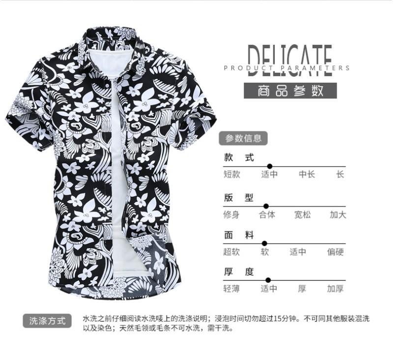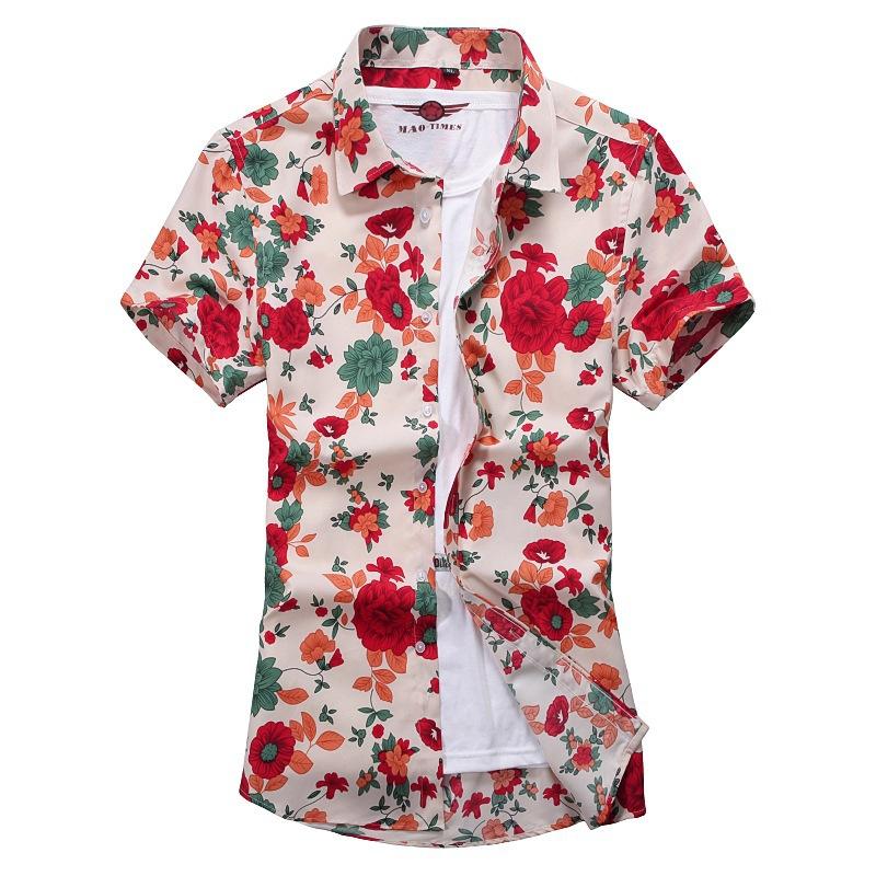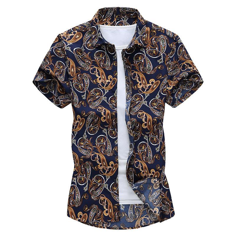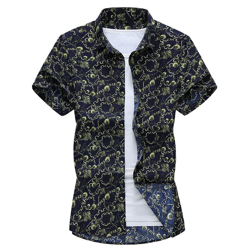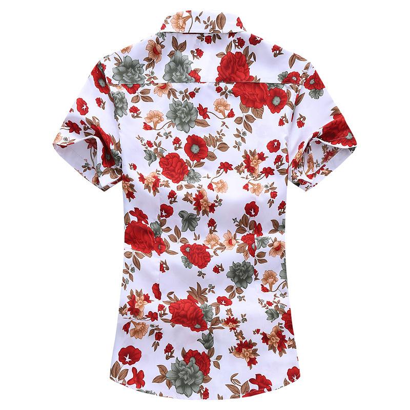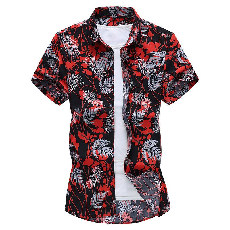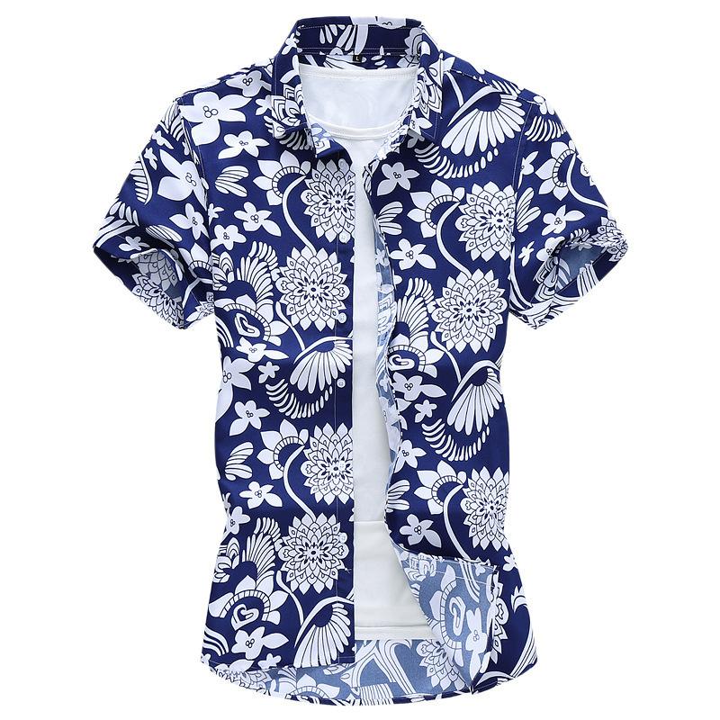 Camisa de manga corta ajustada para hombre, de verano 2024, para playa, informal, de talla grande, con estampado floral