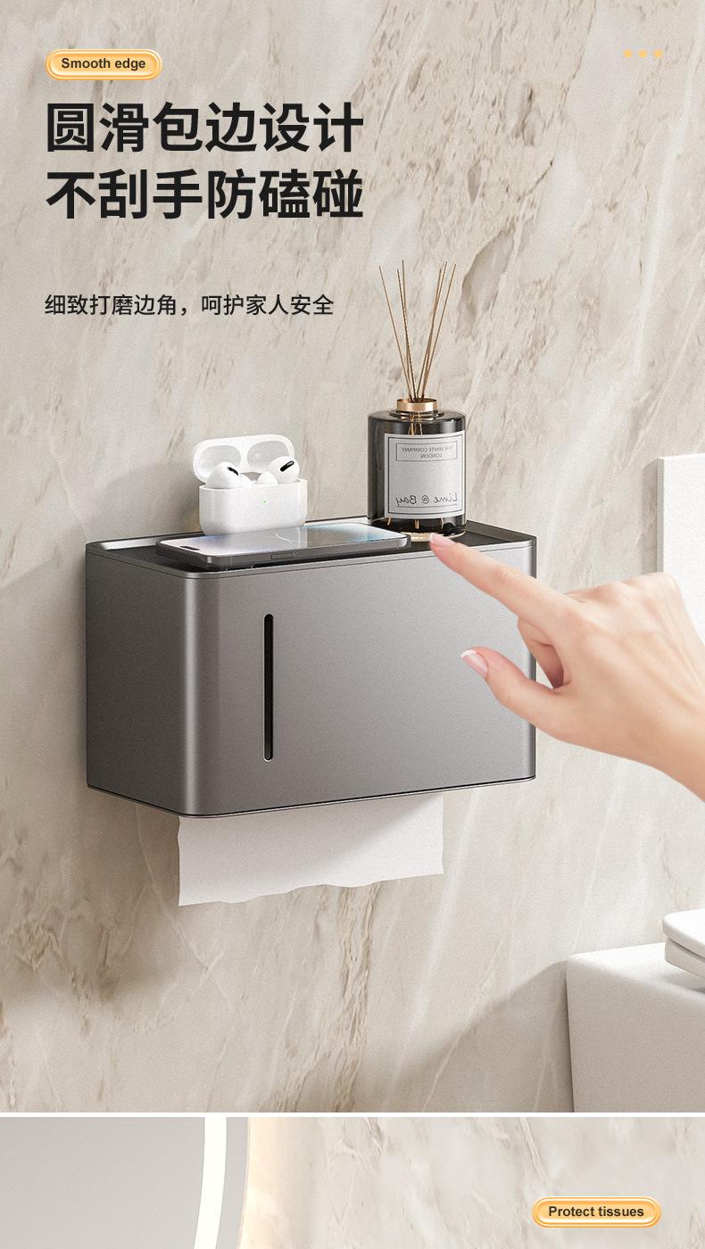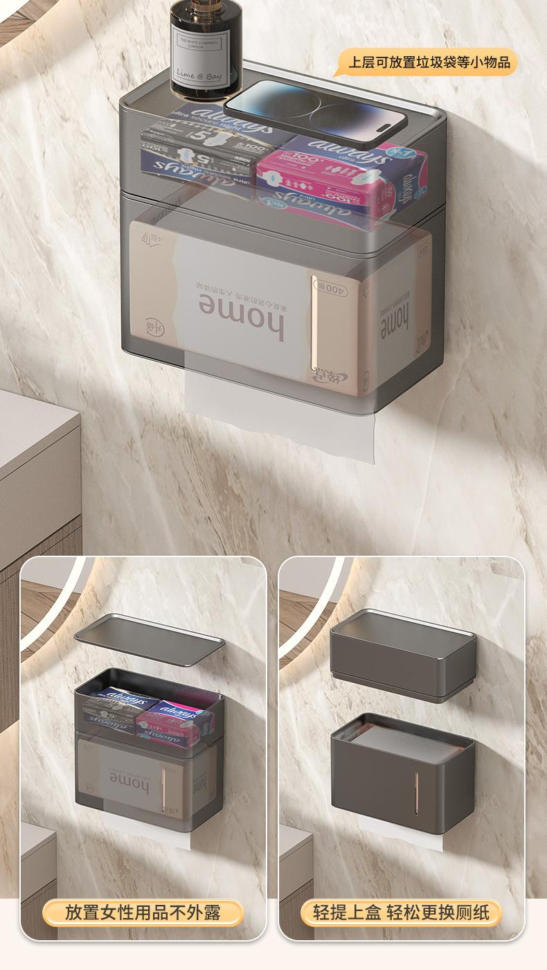 Caja para Pañuelos de Baño sin Perforaciones Impermeable Montado en la Pared Soporte para Rollo de Inodoro Papel Higiénico Estante de Almacenamiento de Papel Higiénico