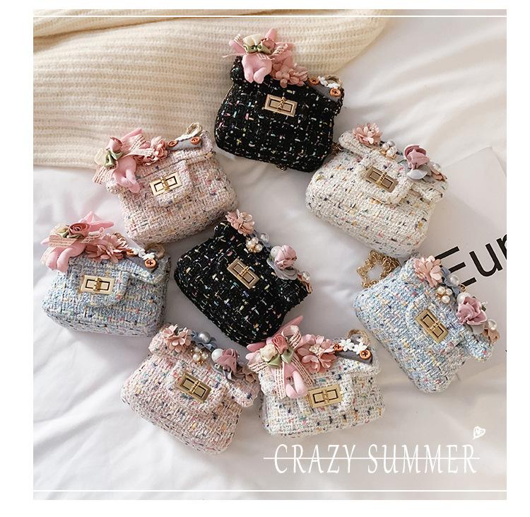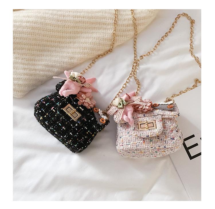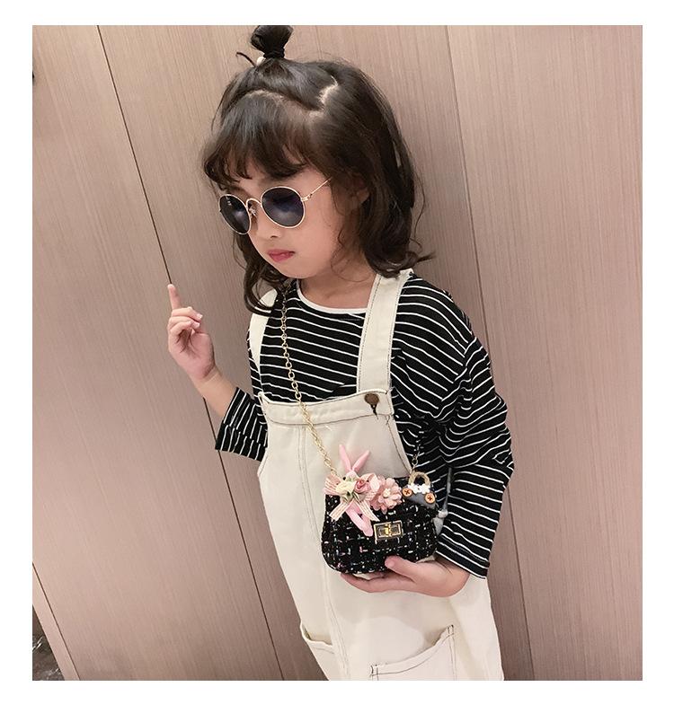 Bolso infantil con diseño de flores de dibujos animados para niña, bandolera estilo Chanel, monedero para bebé, bolsa para dulces