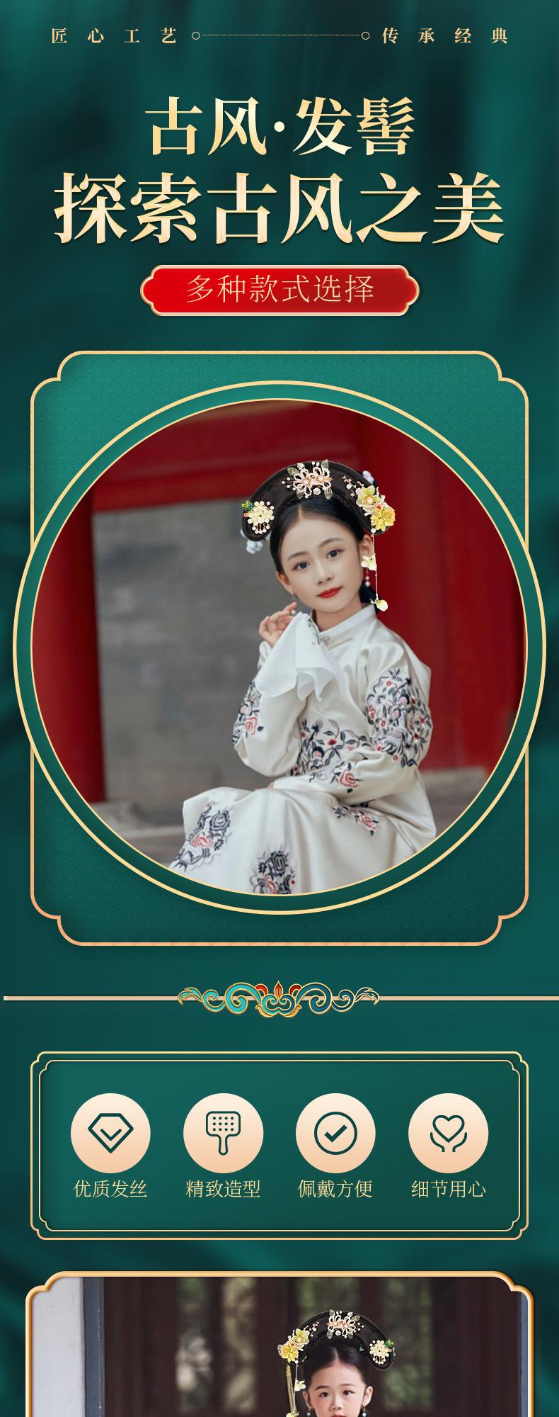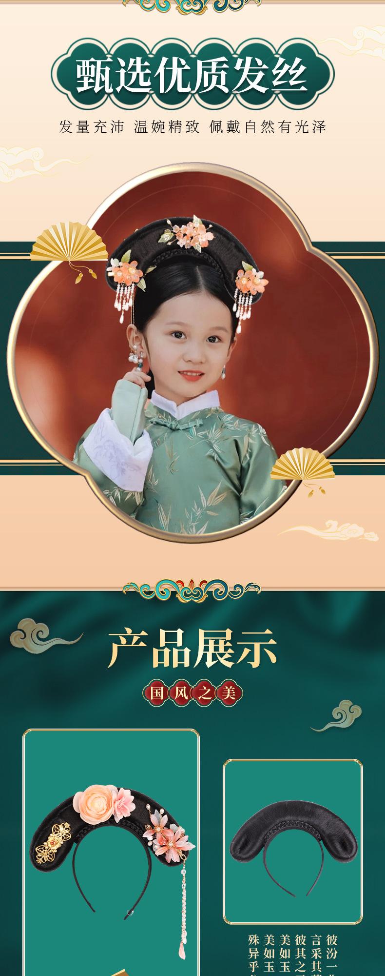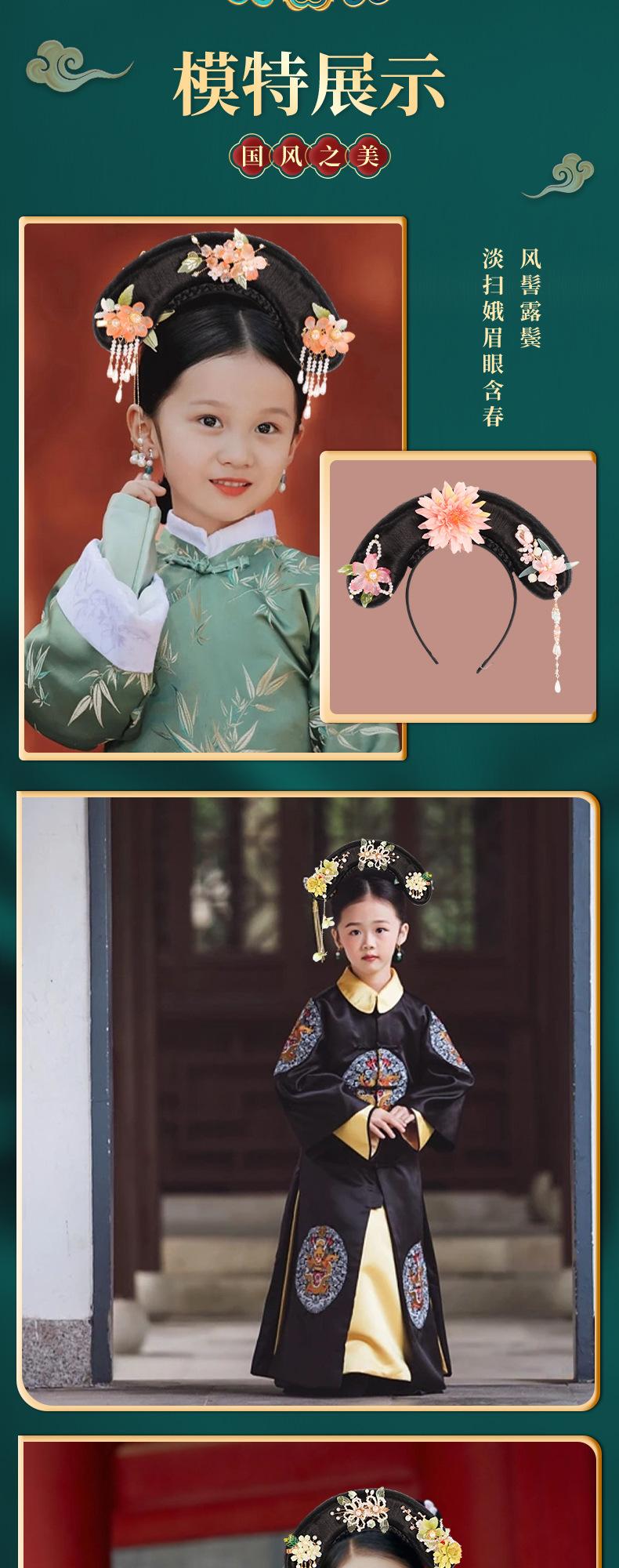 Accesorios para el cabello de estilo antiguo hanfu, peluca, bandera, cabeza, diadema sencilla para niños, bolsa de peluca, Palacio Imperial, sesión de fotos, combinación de joyas