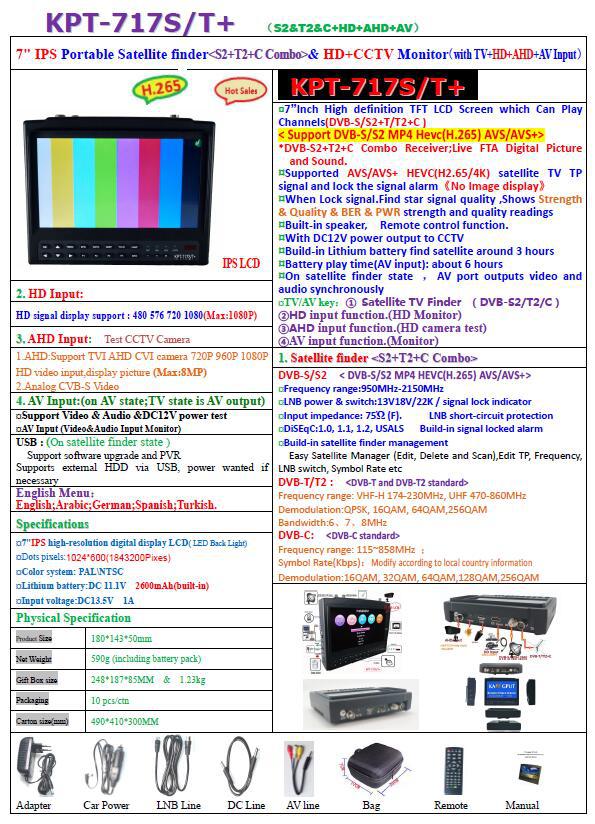 Buscador de TV satelital KPT-717ST AHD TS DVB-S2/T2/C Buscador HD