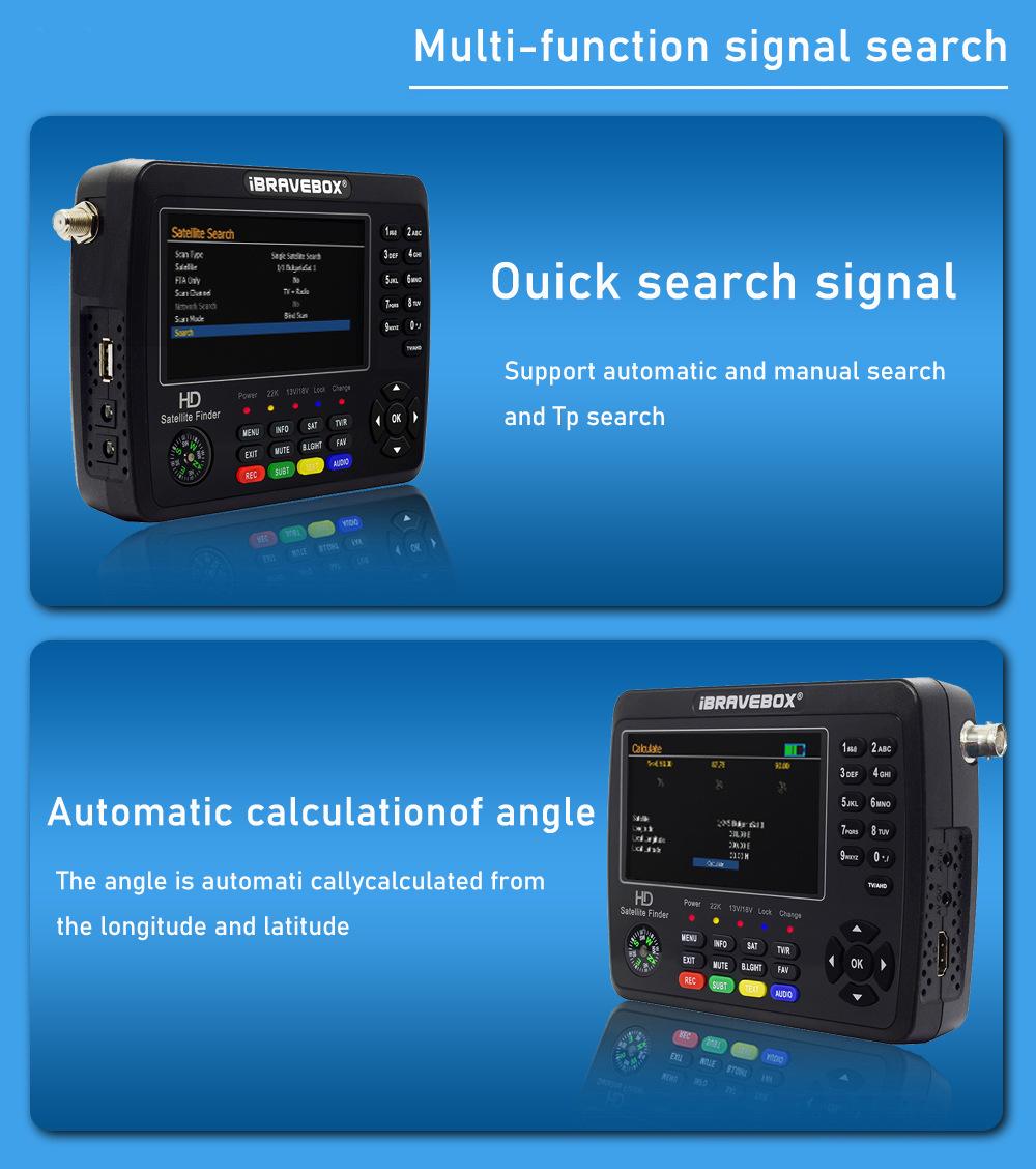 4. Dispositivo de medición digital para la intensidad y calidad de la señal, Admite preestablecer toda la información del satélite.