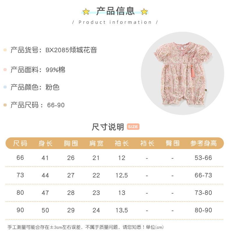 Ropa de bebé de 24 años, verano, manga corta, fina, niña, ropa china, ropa para recién nacidos, mono de bebé