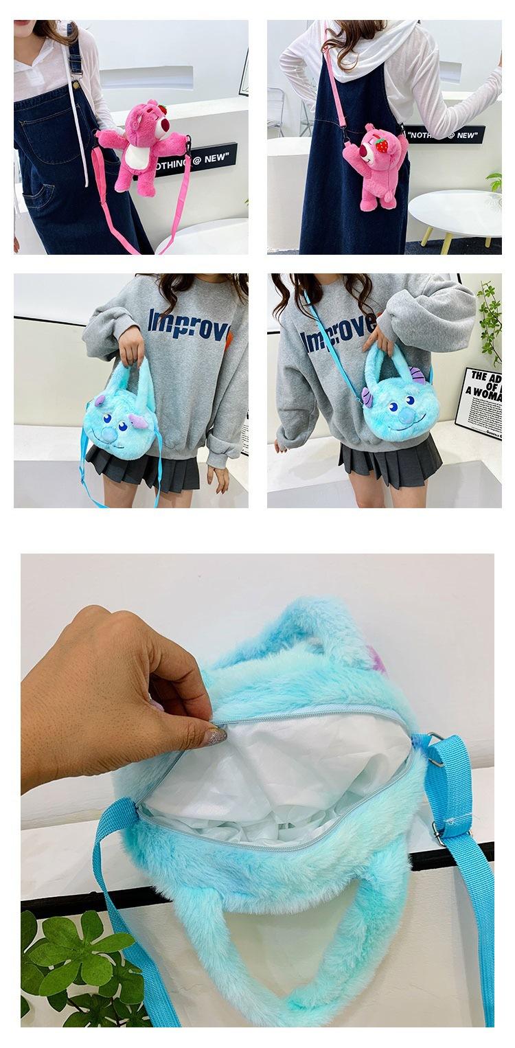 Bolso de mano de felpa con dibujos animados para niña, bonito bolso de almacenamiento de gran capacidad para otoño e invierno, moderno bolso cruzado para el hombro.