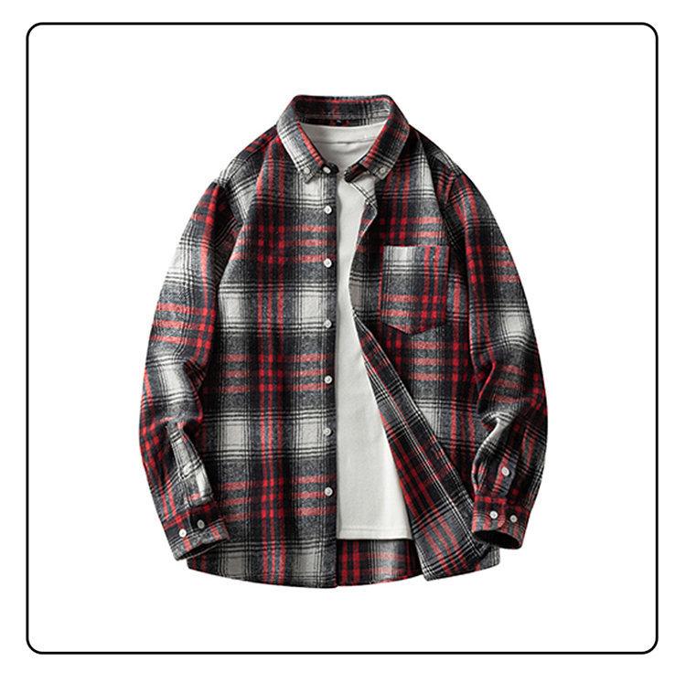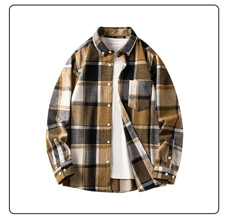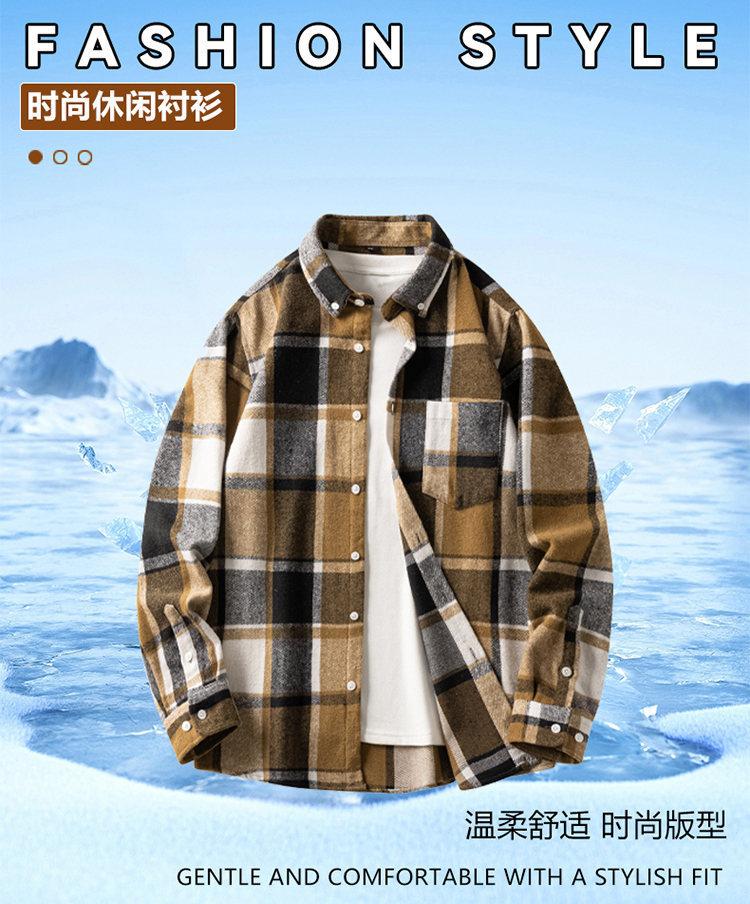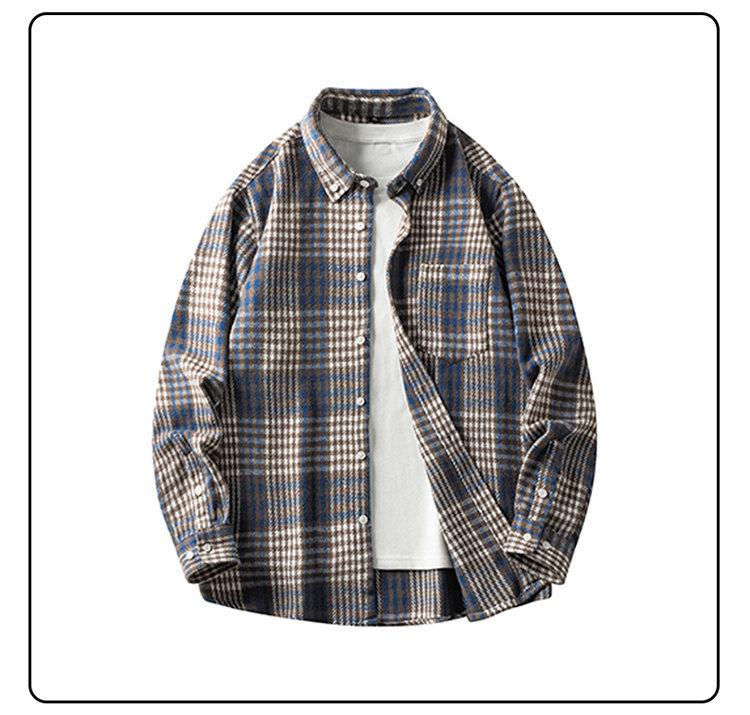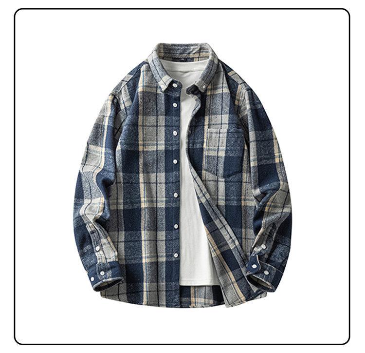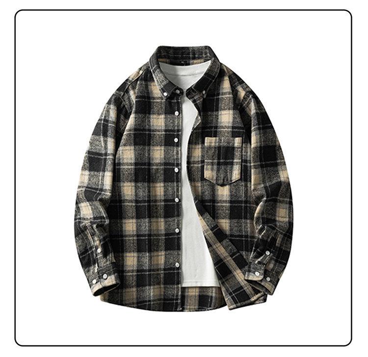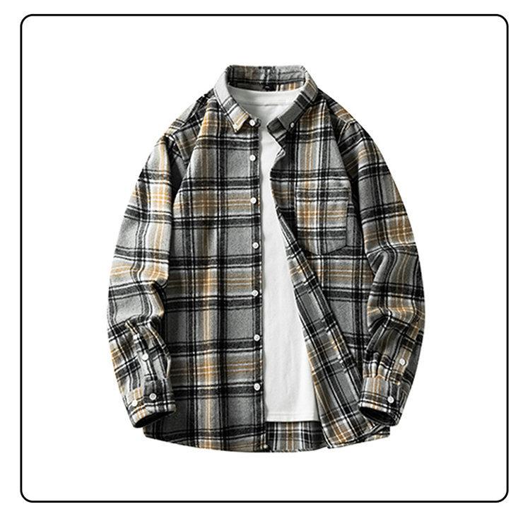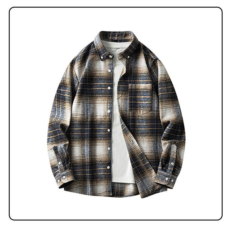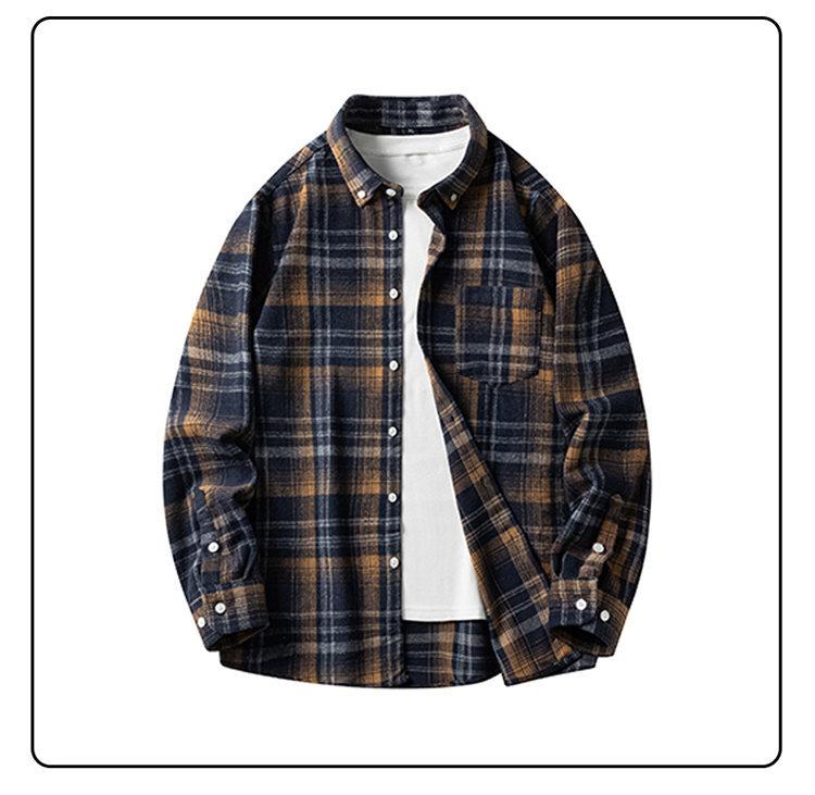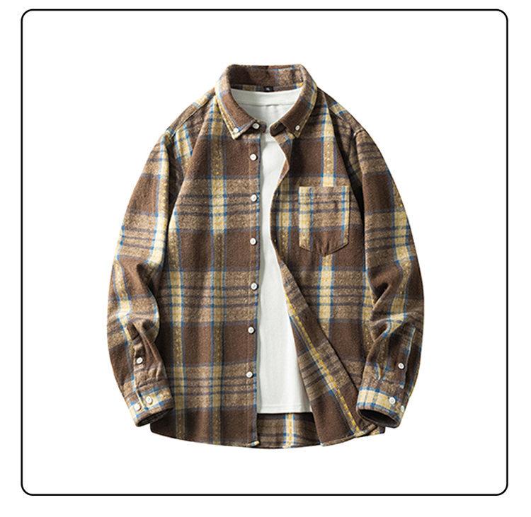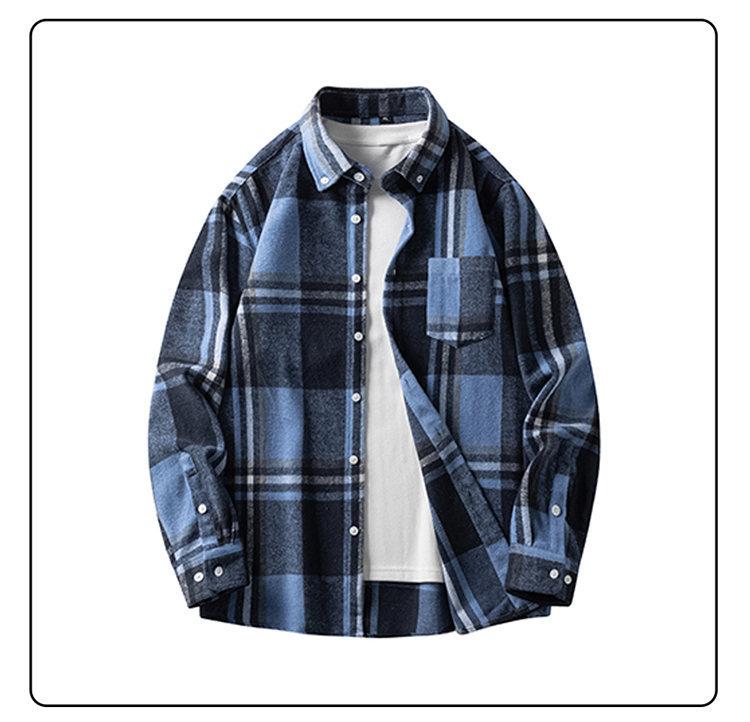 Camisa de hombre de comercio exterior de primavera y otoño de 2024, nueva moda, con bolsillo, talla grande, solapa, camisa a cuadros de manga larga, lote de ropa para hombre