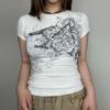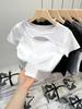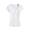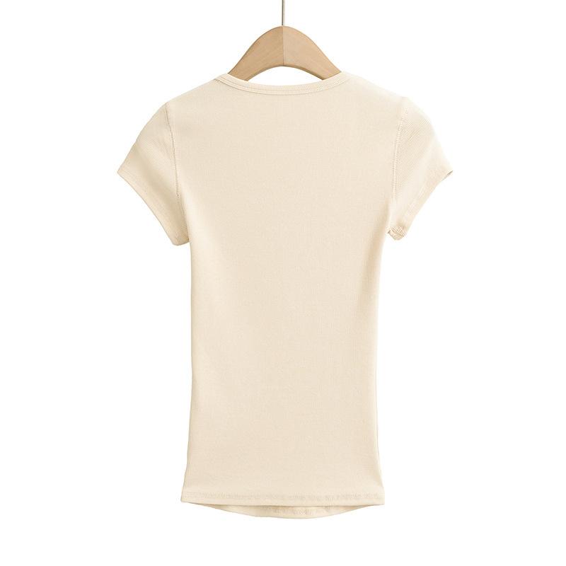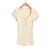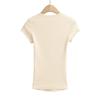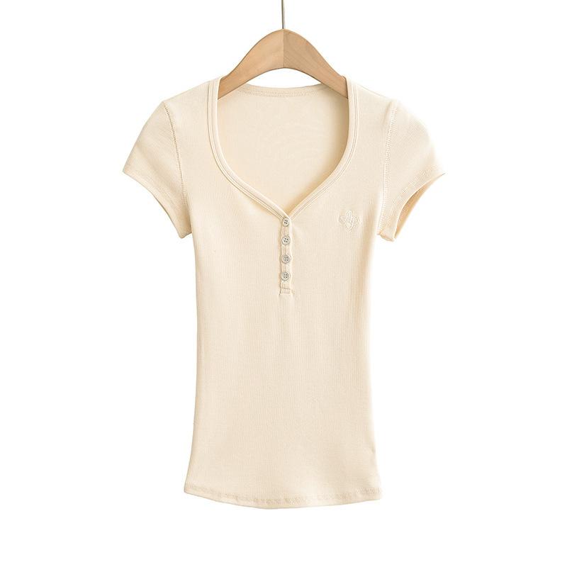 Camiseta básica sexy de manga corta con cuello en U, elástica, ajustada y con hebilla bordada, novedad de verano de 2024