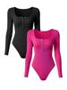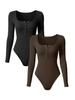 Mono de comercio exterior transfronterizo europeo y americano 2024, sexy, informal, de una pieza, con cuello cuadrado y botones y manga larga