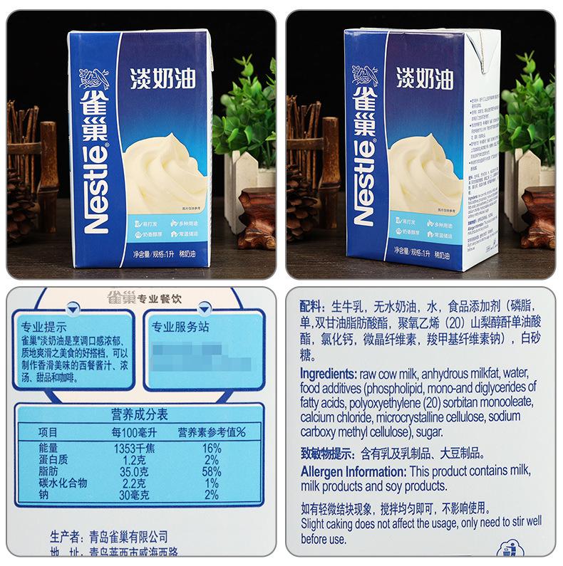 Ingredientes: leche cruda, mantequilla anhidra, agua, aditivos alimentarios (fosfolípidos, ésteres de ácidos grasos de mono- y diglicéridos, monooleato de polioxietileno (20) sorbitán, cloruro de calcio, celulosa microcristalina, carboximetilcelulosa sódica), azúcar blanco, etc. La información real en el empaque del producto prevalecerá.