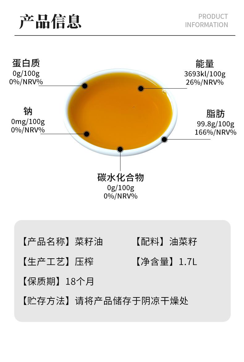 Aceite Puro de Colza Prensado en Granja 1.7L para Cocina Casera Aceite Vegetal, Prensado Físicamente Aceite Comestible en Barril, Recién Exprimido