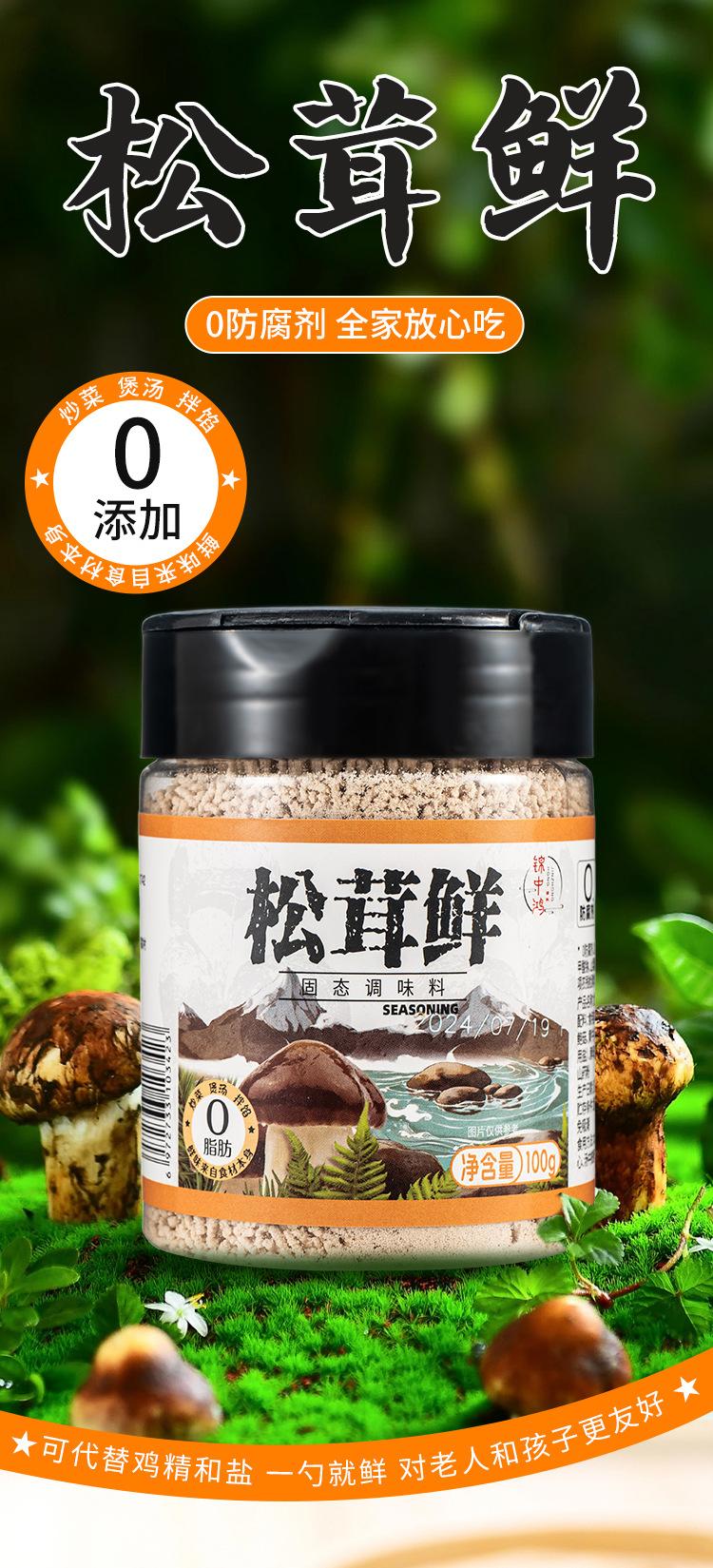 Condimento fresco Tricholoma matsutake, preparado directamente en la fábrica para cocinar en casa, en lugar de esencia de pollo, sal, condimento en polvo, condimento embotellado.