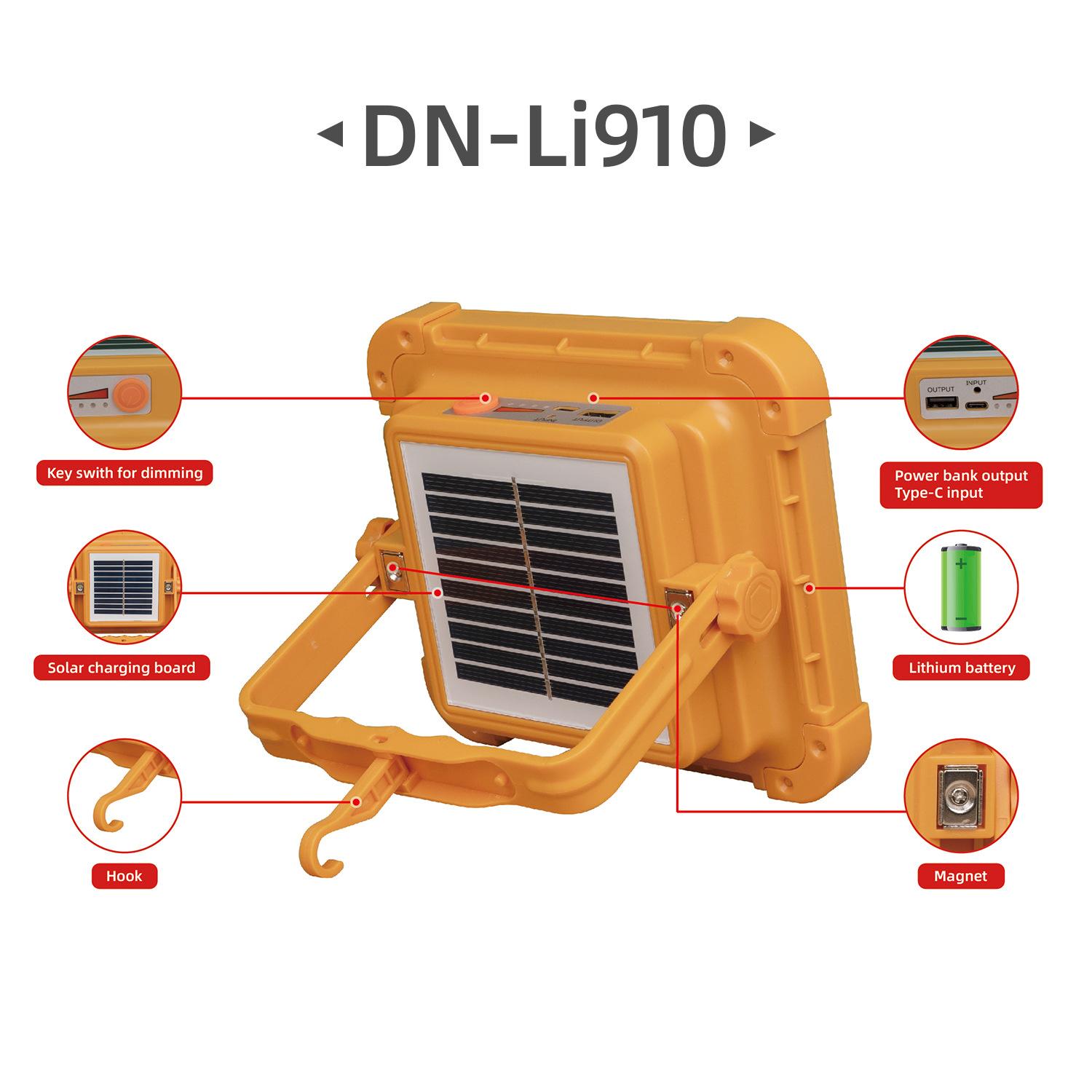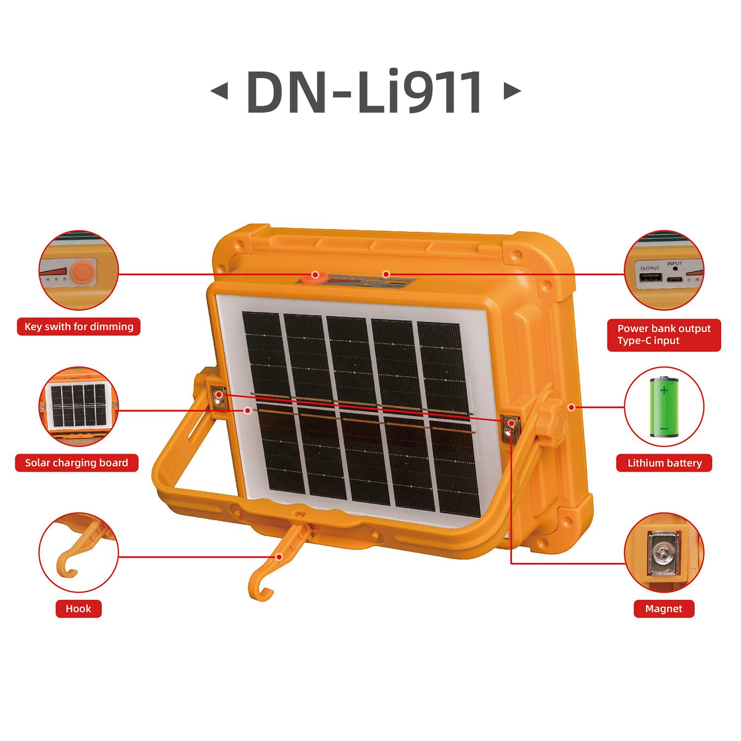 Luz de inundación LED Dingneng recargable solar luz de trabajo batería de litio móvil para exteriores camping portátil fuente de alimentación de emergencia