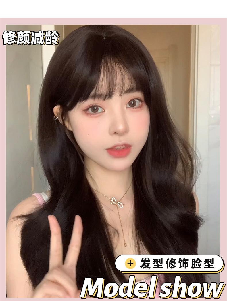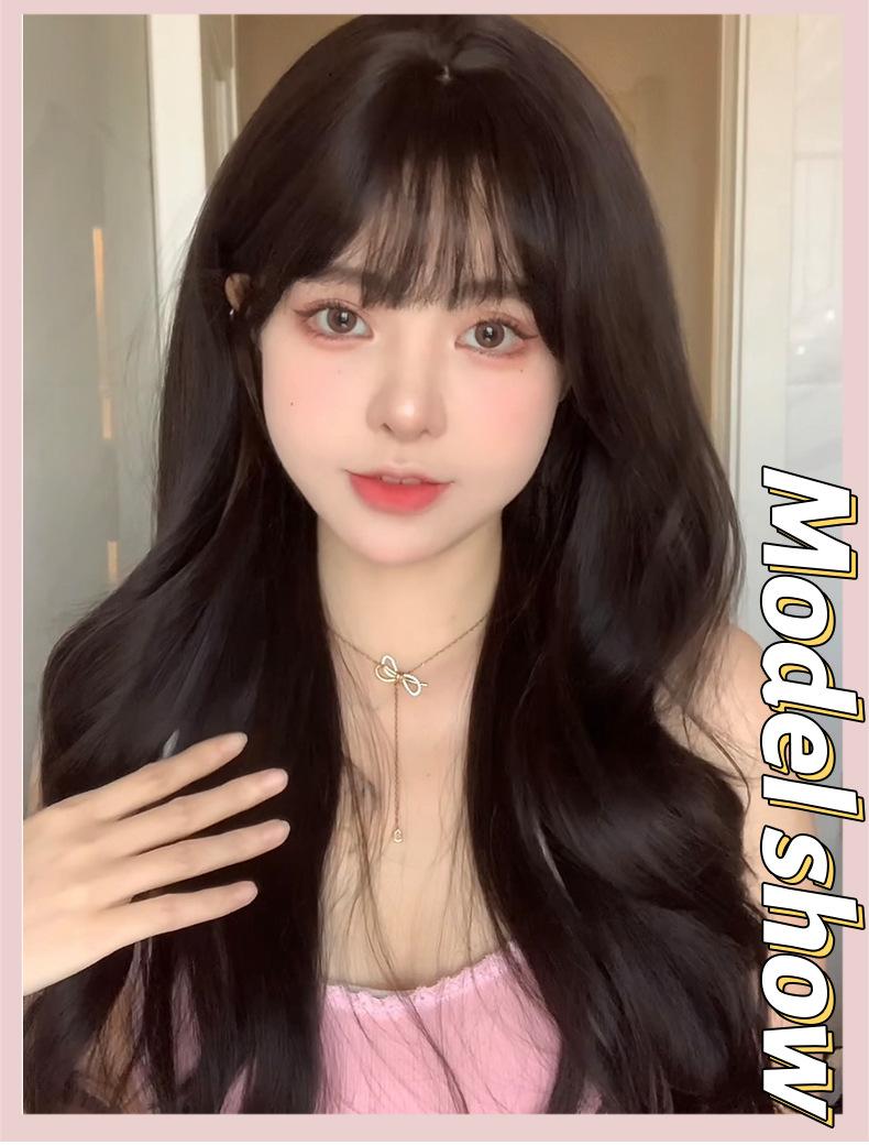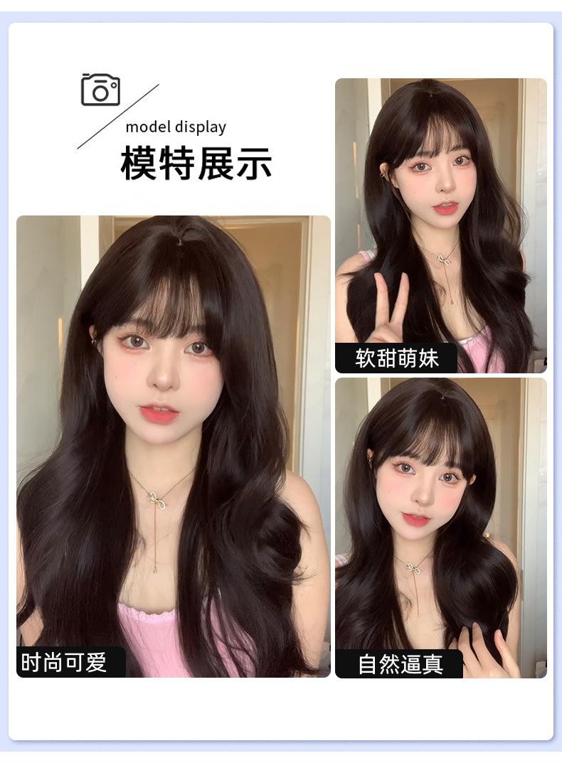 Peluca transfronteriza para mujer, cabello largo, ondulado, largo y rizado, estilo lolita, con flequillo realista y cobertura completa.