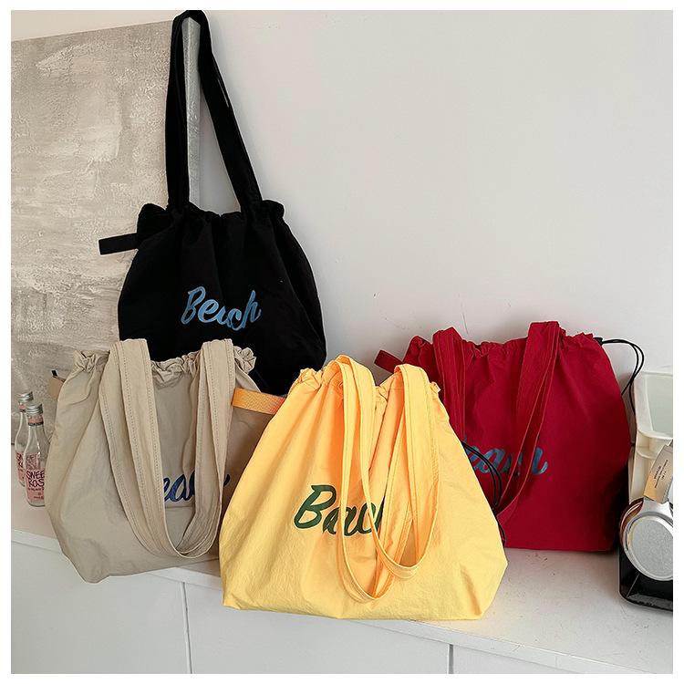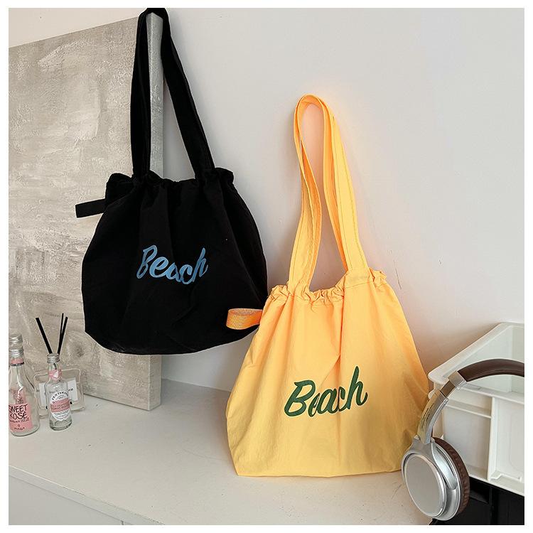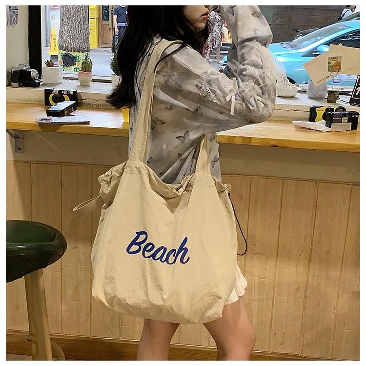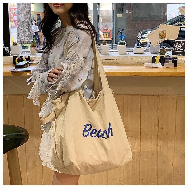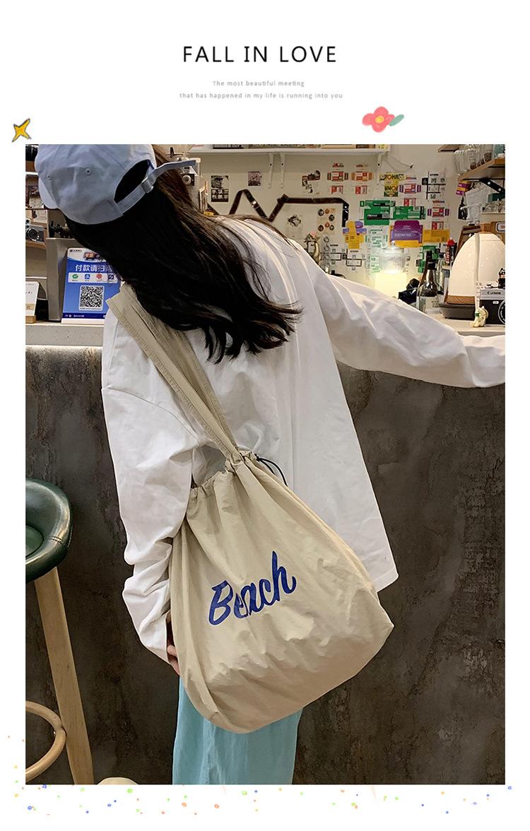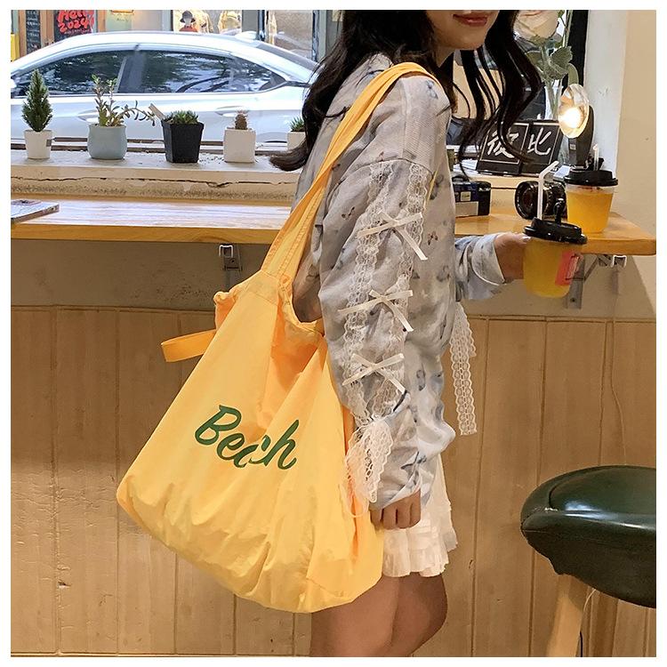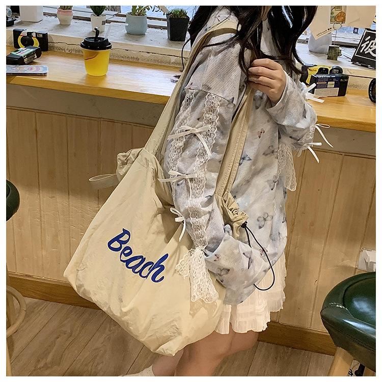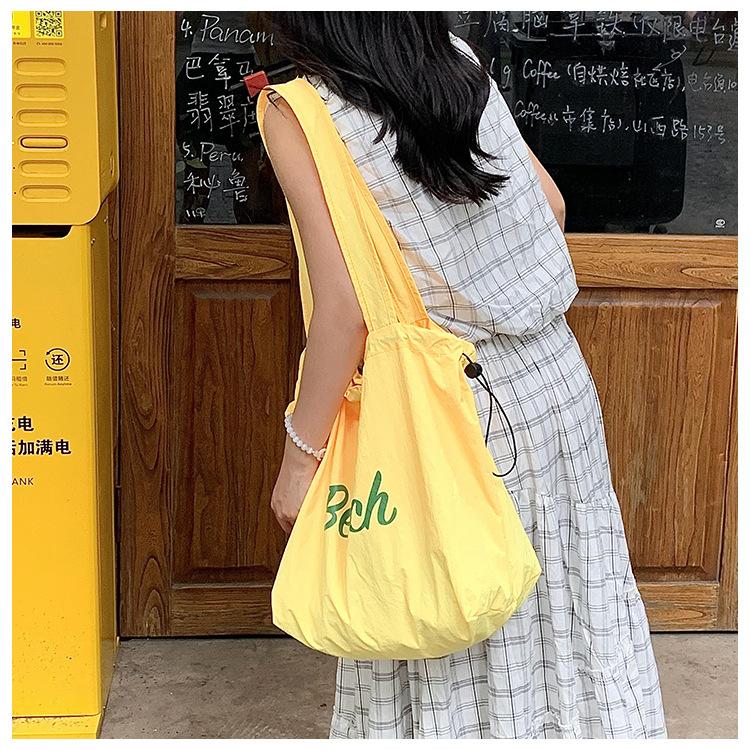 Wfei Bolso de Nailon Estilo Coreano con Letra Impresa Ins Casual Combinable Bolso de Hombro Portátil con Cordón de Gran Capacidad