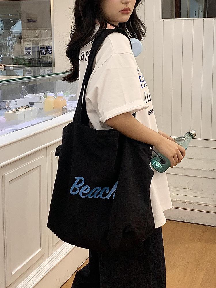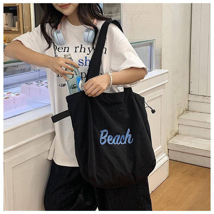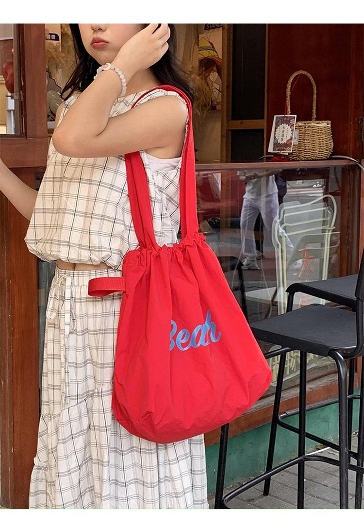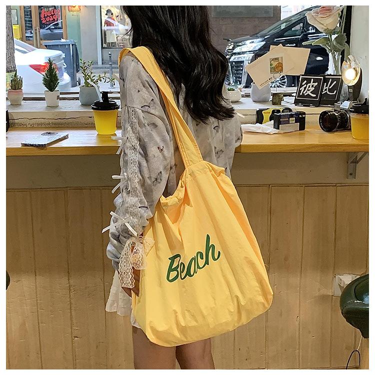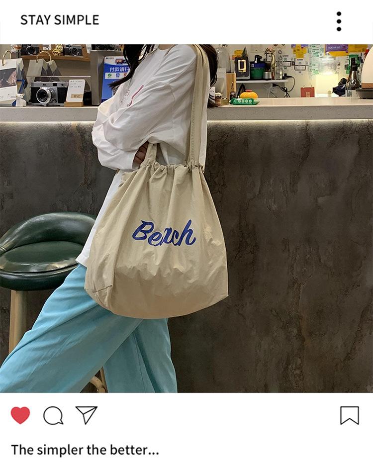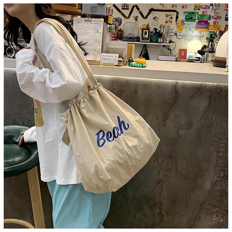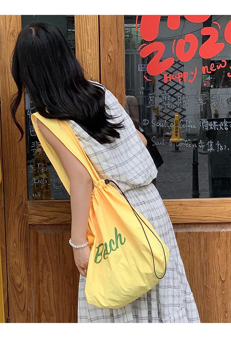 Wfei Bolso de Nailon Estilo Coreano con Letra Impresa Ins Casual Combinable Bolso de Hombro Portátil con Cordón de Gran Capacidad