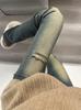 Vaqueros gruesos de terciopelo para mujer, novedad de otoño e invierno de 2024, pantalones largos ajustados de tubo con cintura alta y adelgazamiento.