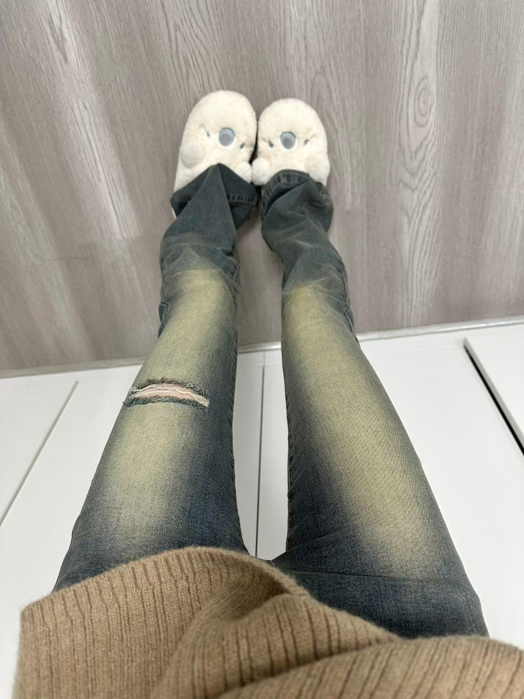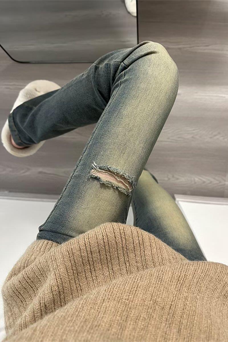 Vaqueros de otoño para mujer, ajustados, sexys y sexys, vaqueros retro con abertura y tiras con borde sin rematar para mujer, verano