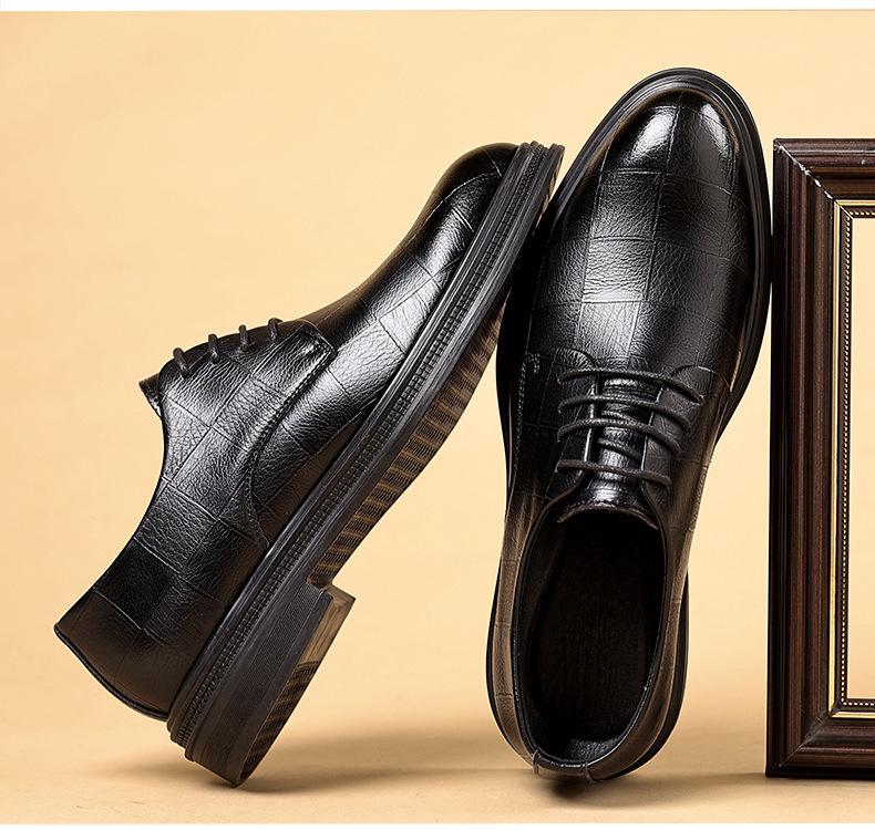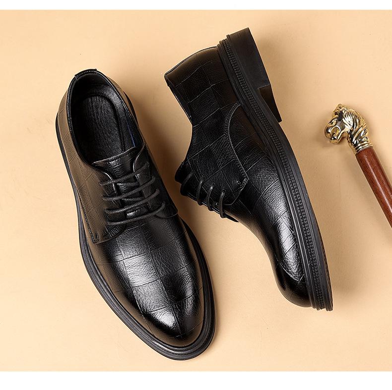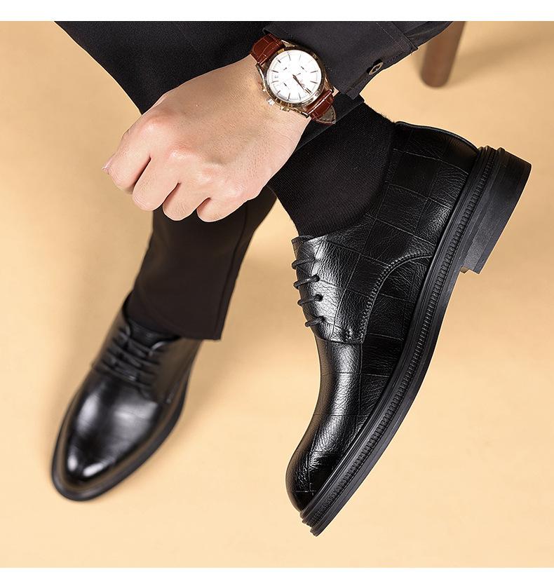 Zapatos de cuero para hombre 2024, zapatos de traje formal de negocios a cuadros de piel de vaca, zapatos de novio de boda de estilo británico, marea de una generación de cabello