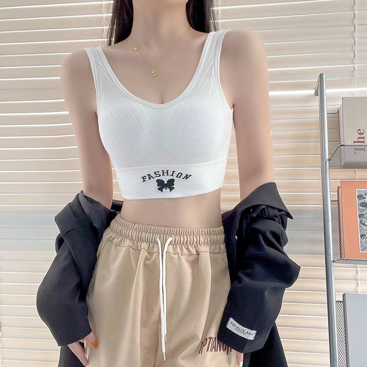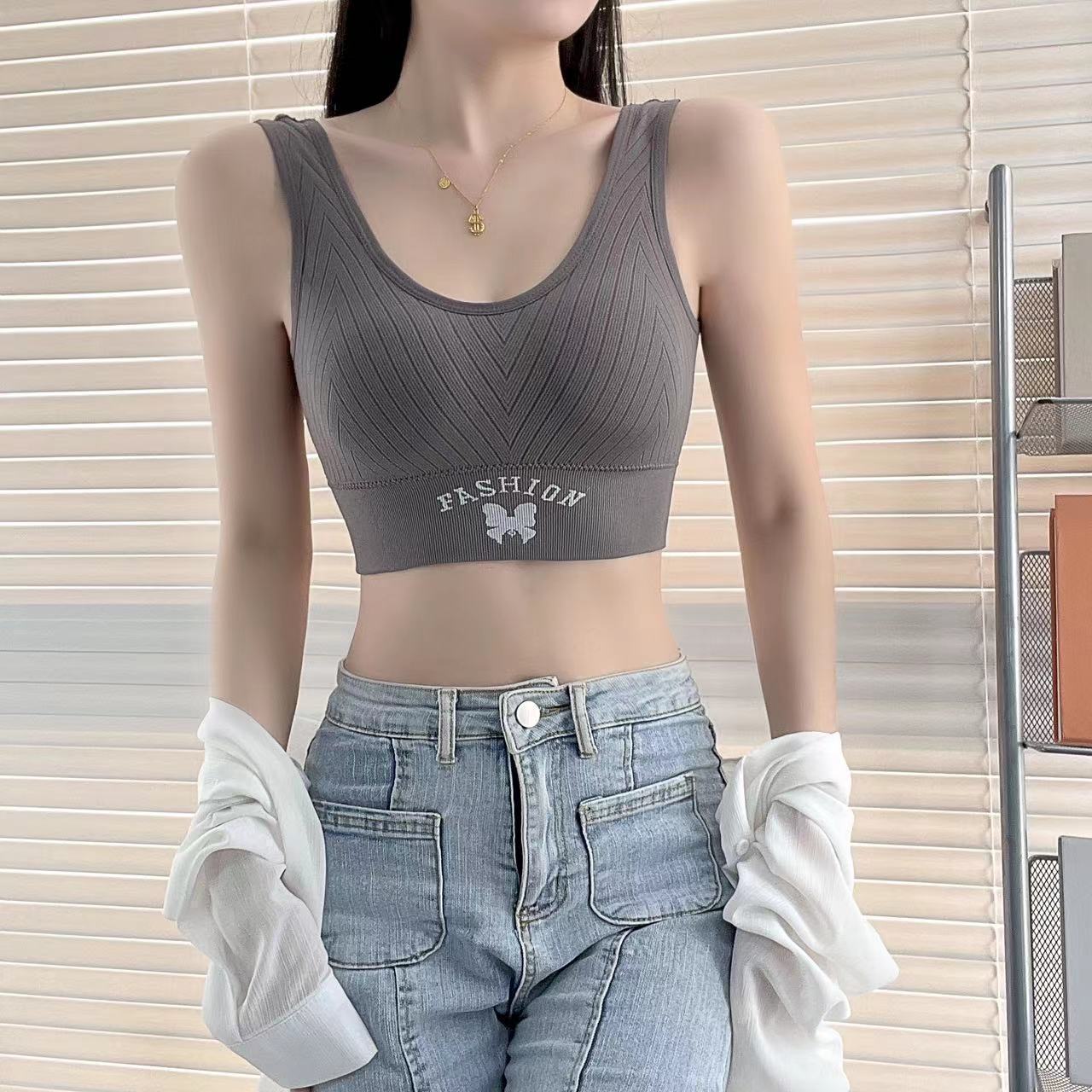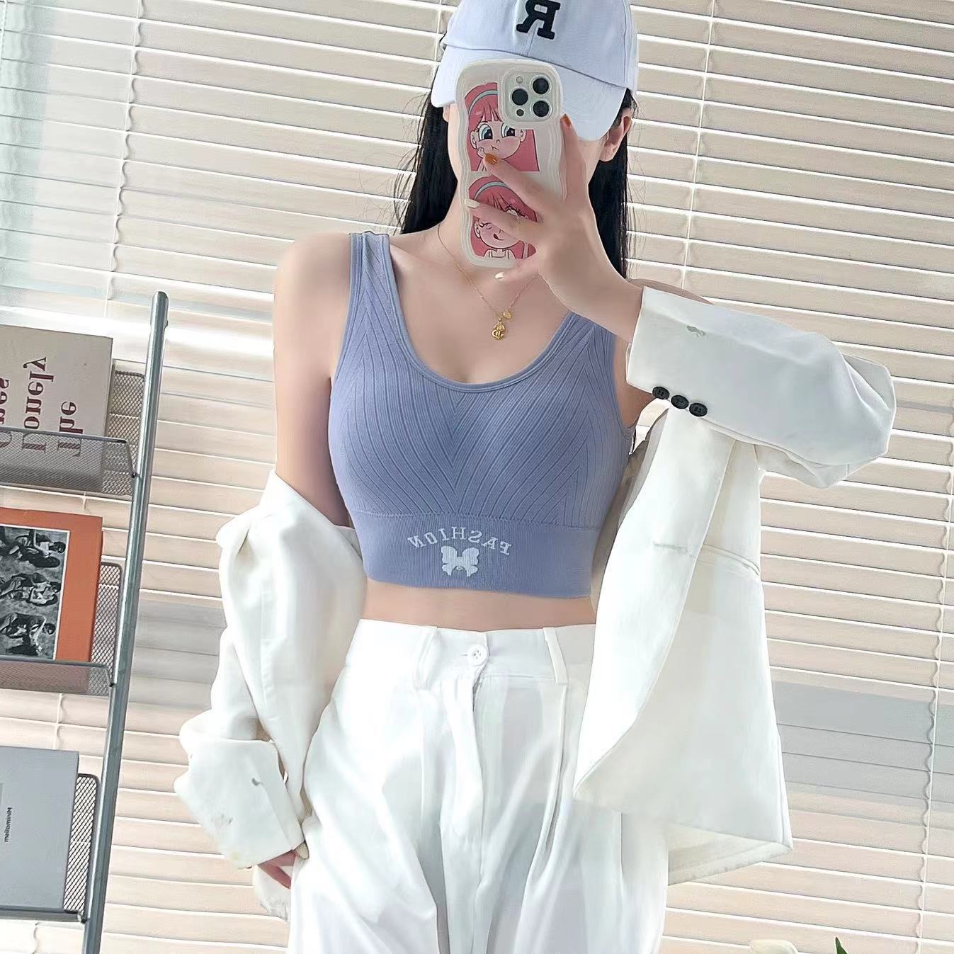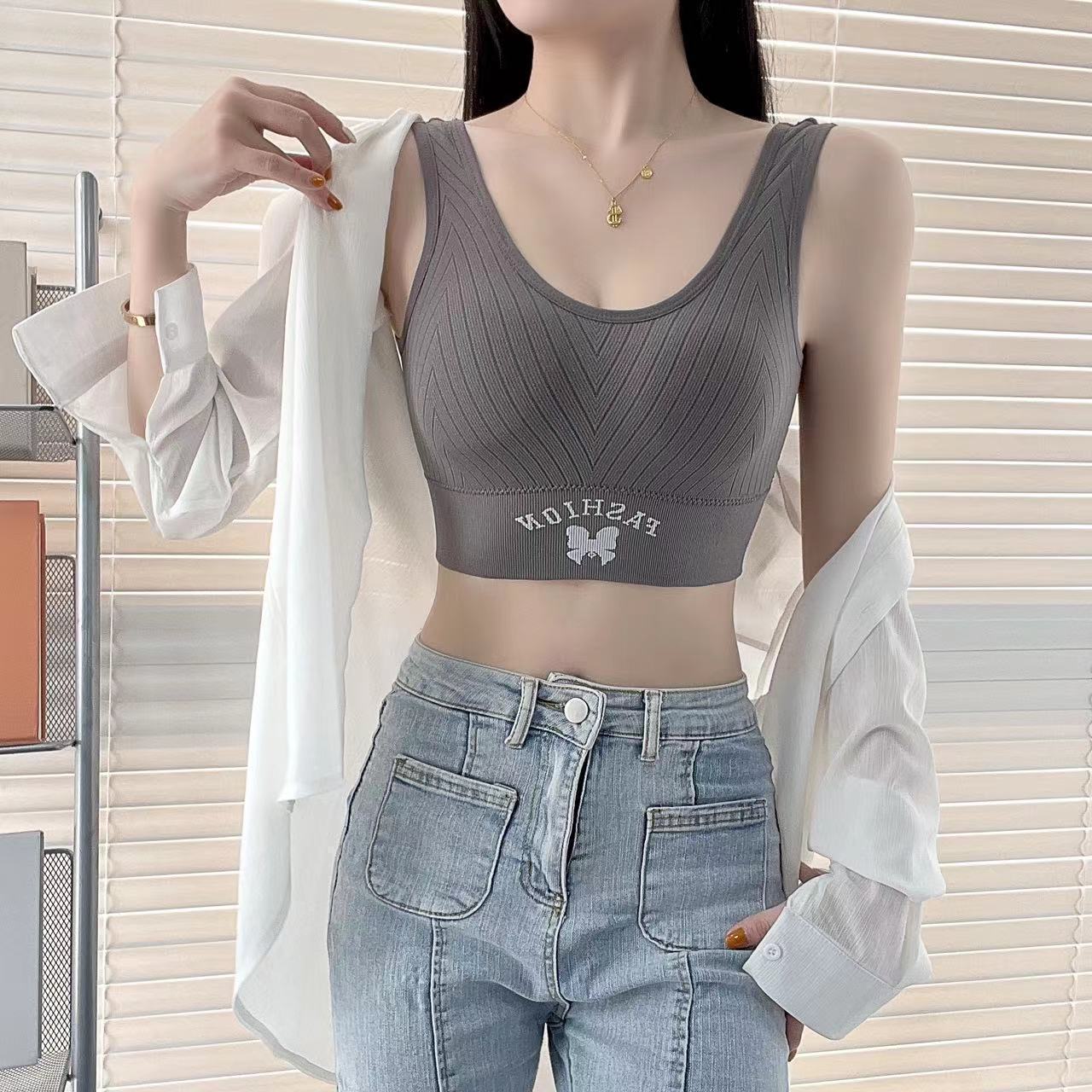 Compra Nuevo Chaleco Pequeño Bordado para Mujer Corto para Usar Debajo o Encima con Almohadilla en el Pecho Envoltura de Pecho Sin Costuras Ropa Interior Deportiva de Base para Yoga al por mayor en Joom.pro