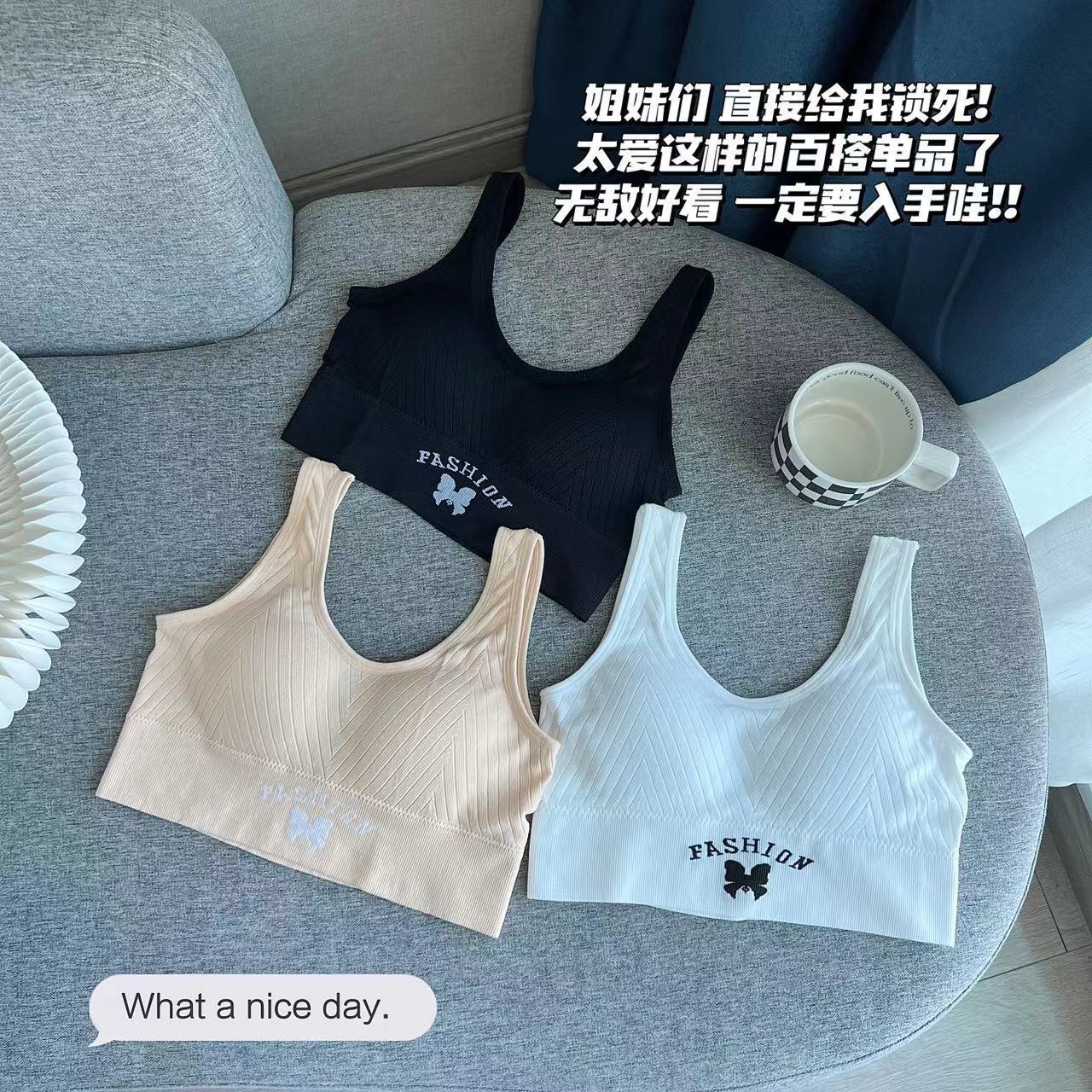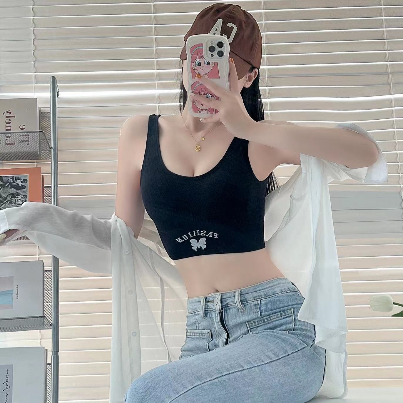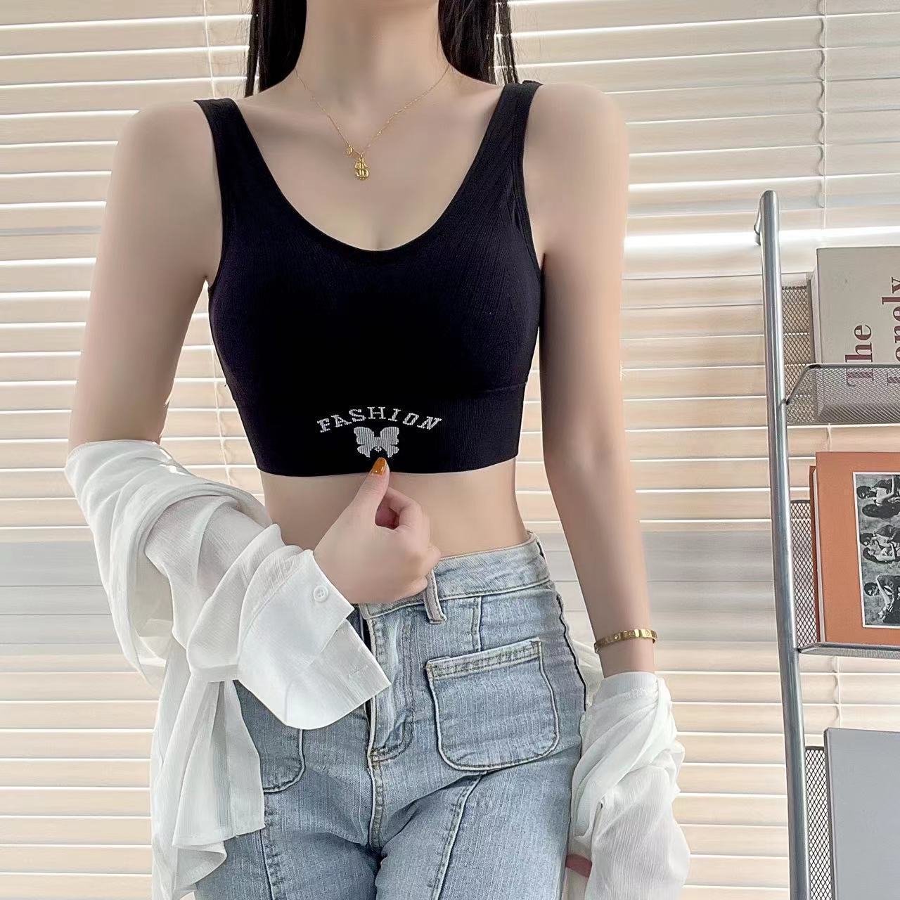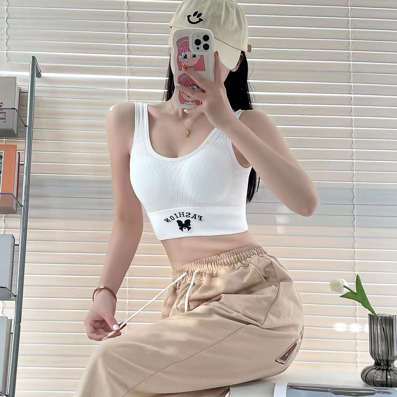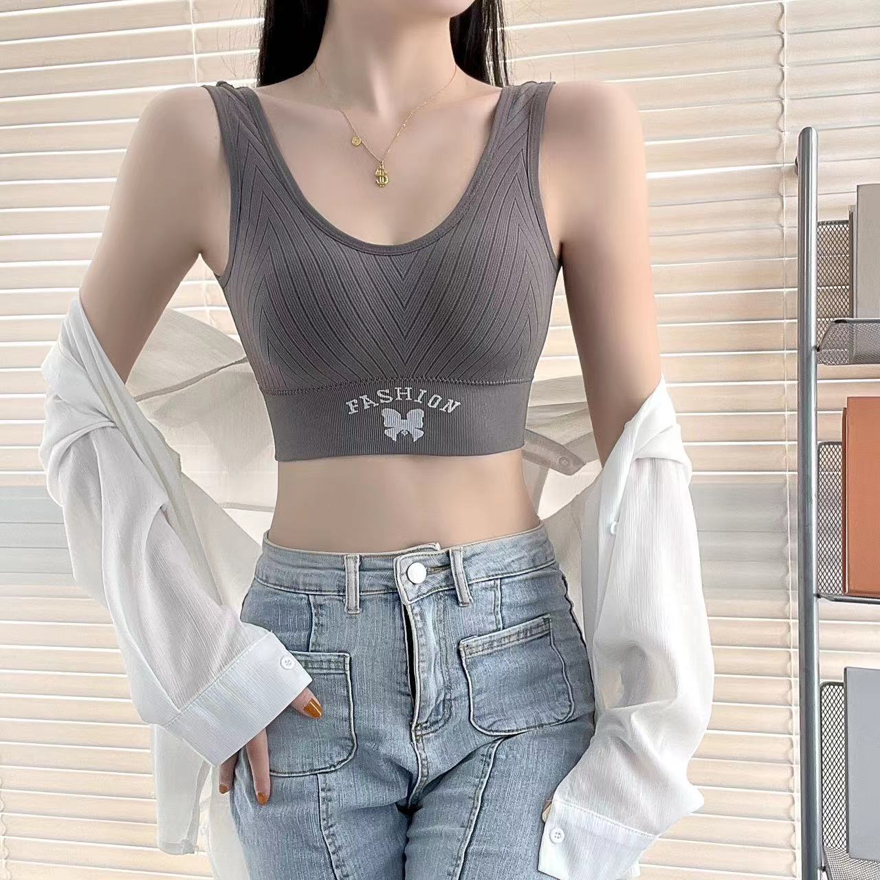 Compra Nuevo Chaleco Pequeño Bordado para Mujer Corto para Usar Debajo o Encima con Almohadilla en el Pecho Envoltura de Pecho Sin Costuras Ropa Interior Deportiva de Base para Yoga al por mayor en Joom.pro