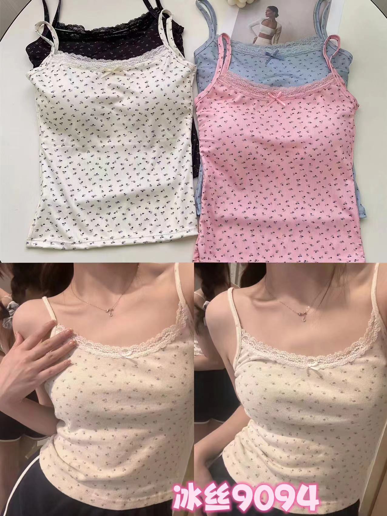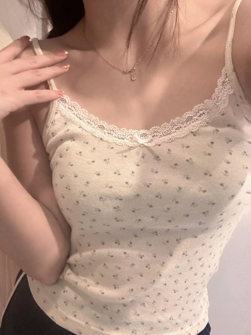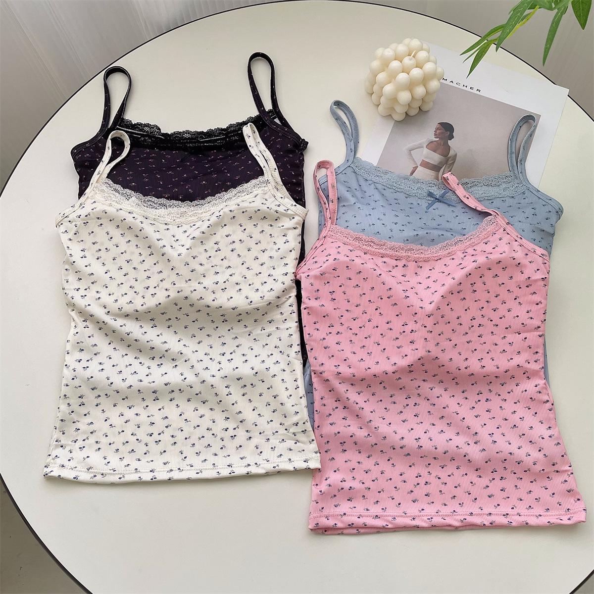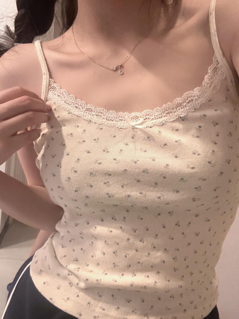 Verano Nuevo Camisola Floral Sin Mangas para Mujer Encaje Sexy Ajustado Top Ropa Exterior Espalda Hermosa Íntimos