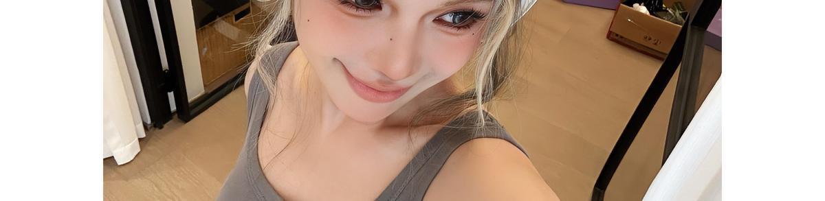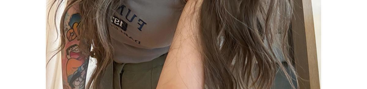 Long curly hair can be flat but oblique bangs