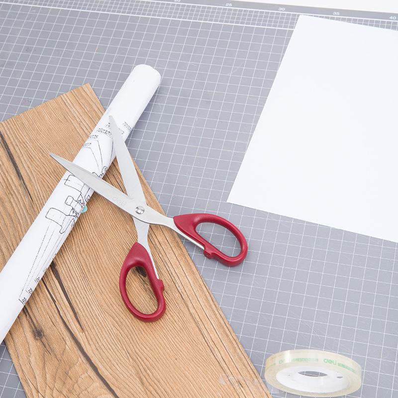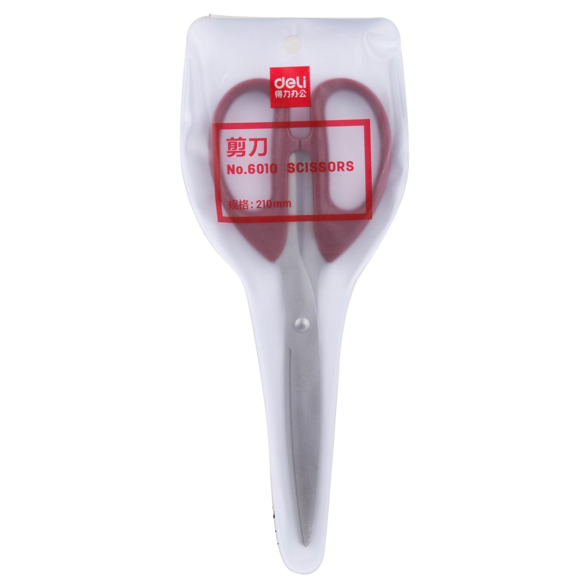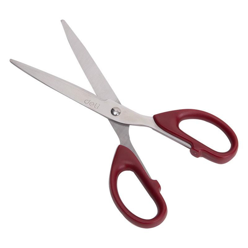 Compra Tijeras Deli 6010 tijeras de mano 210mm tijeras de estudiante acero inoxidable cortador de oficina rojo negro al por mayor en Joom.pro