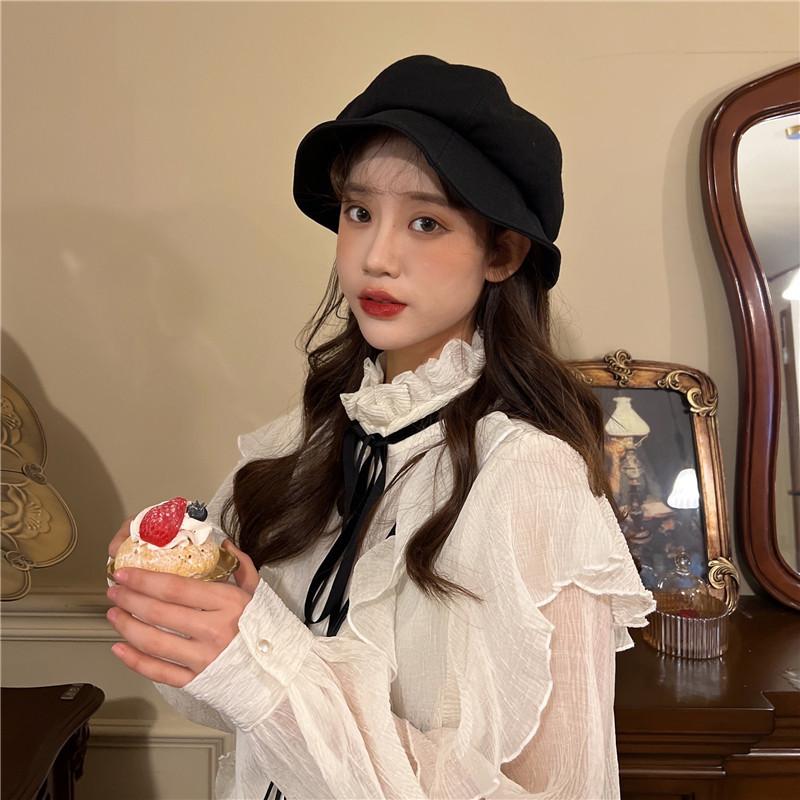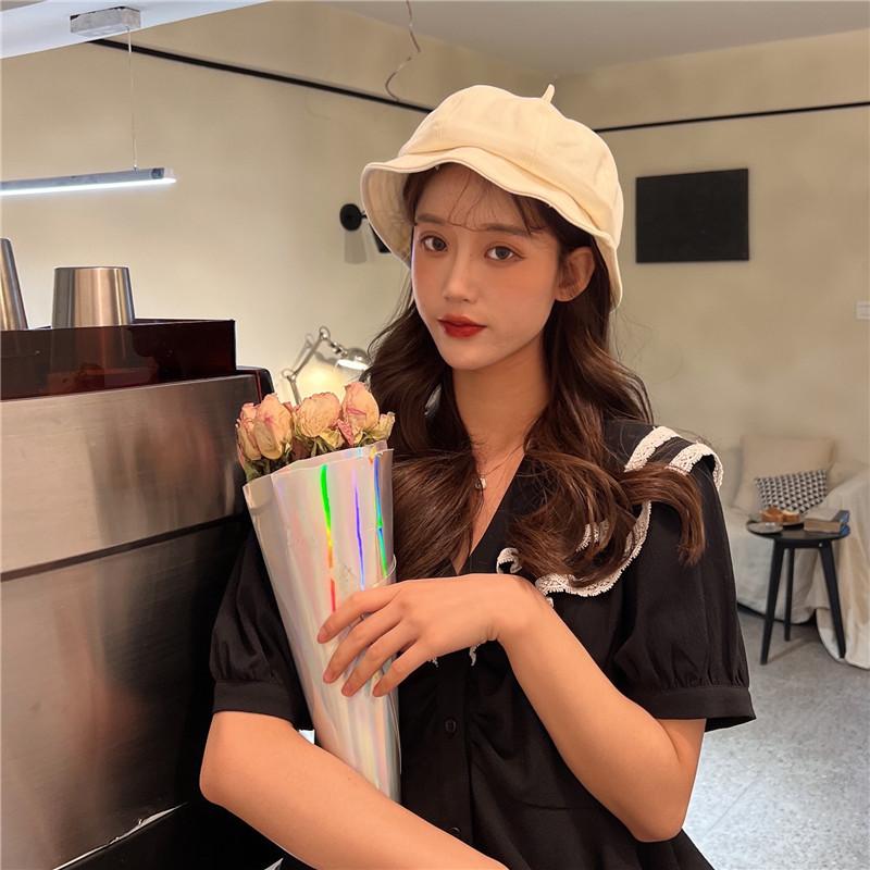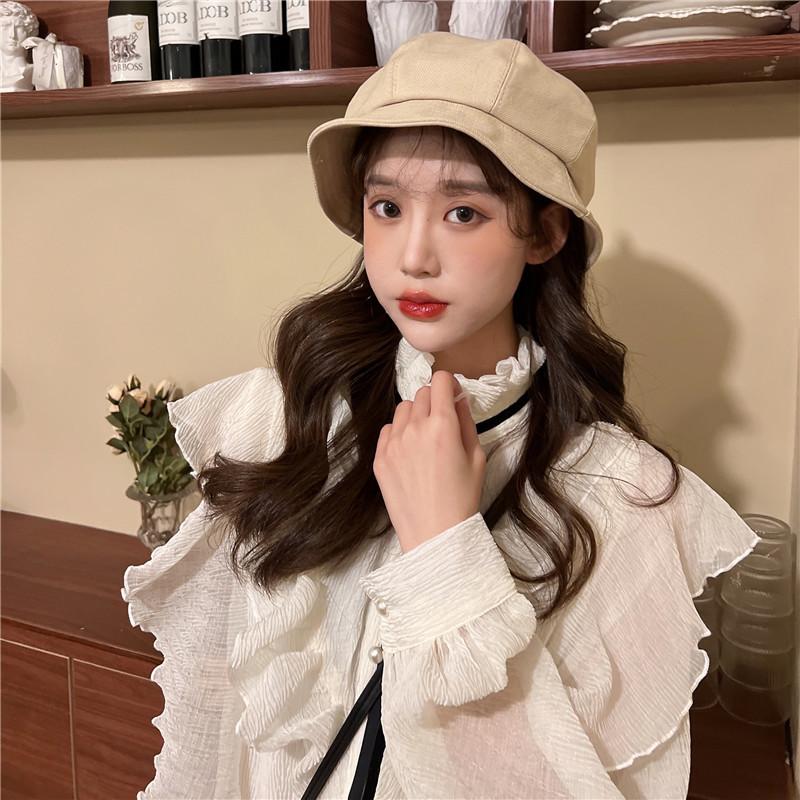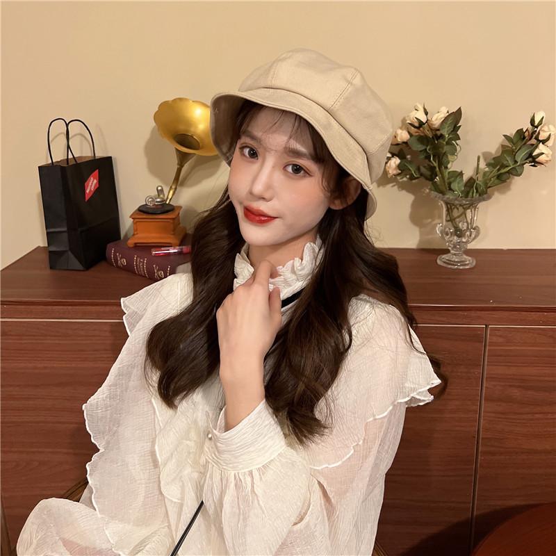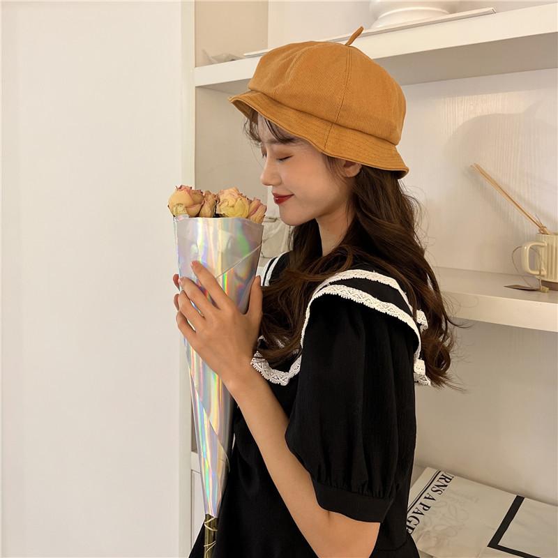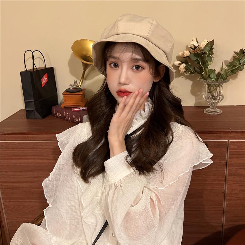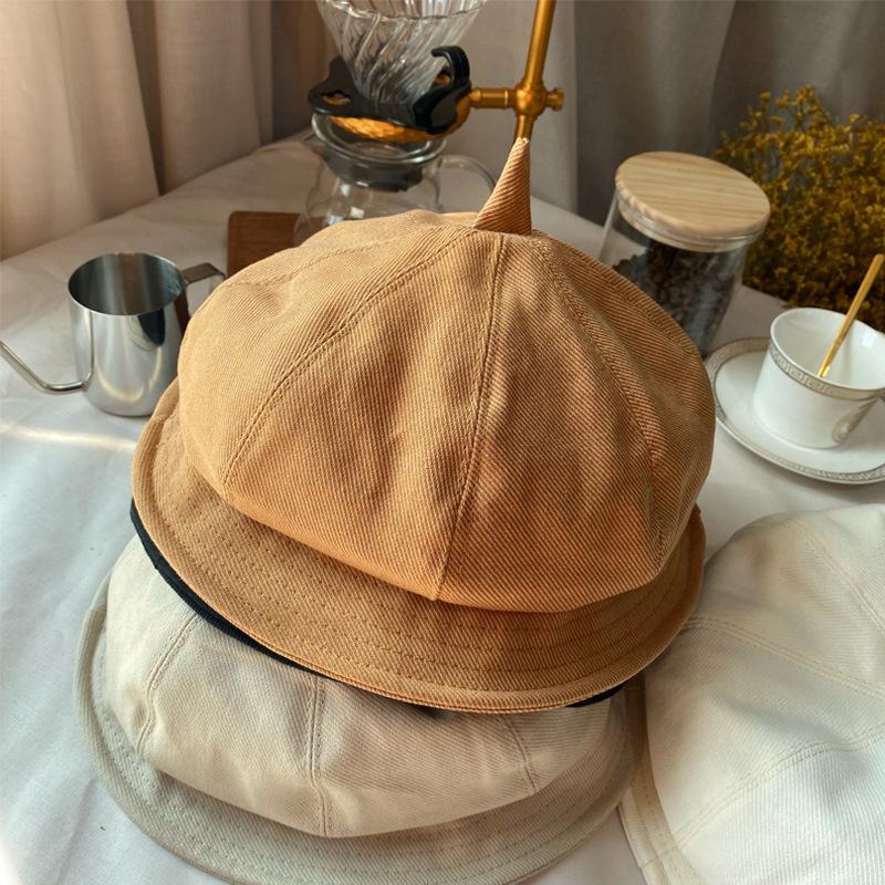 Sombrero de Nube Elegante de Nicho Primavera y Otoño Estilo Japonés Sombrero Negro Oscuro Sombrero de Pescador Pequeño que Muestra el Rostro para Mujer Sombrero de Medusa Sombrero de Cubo Parasol