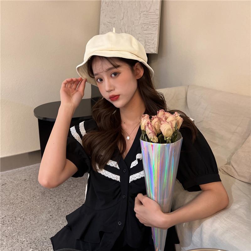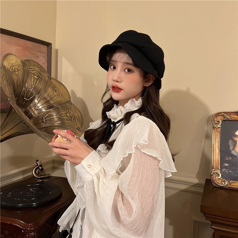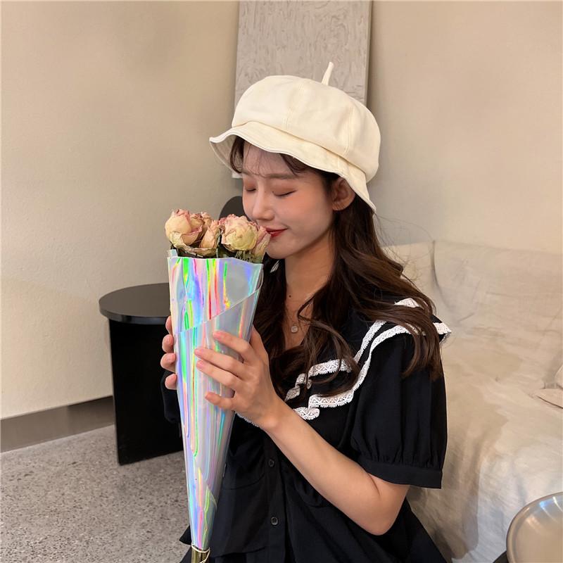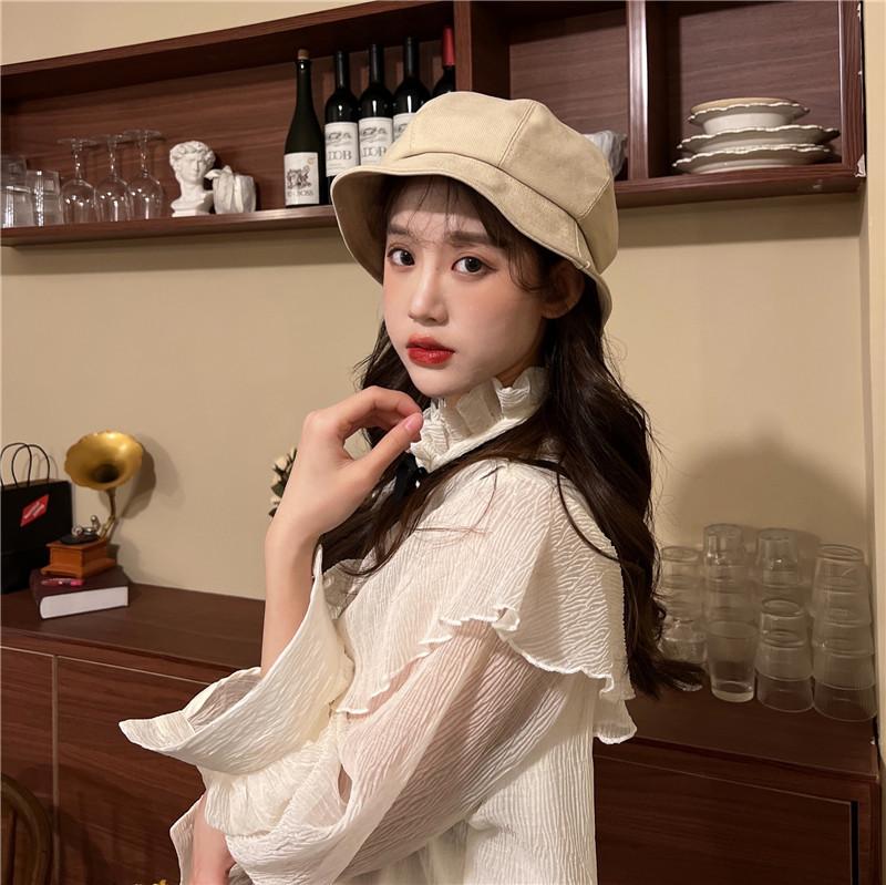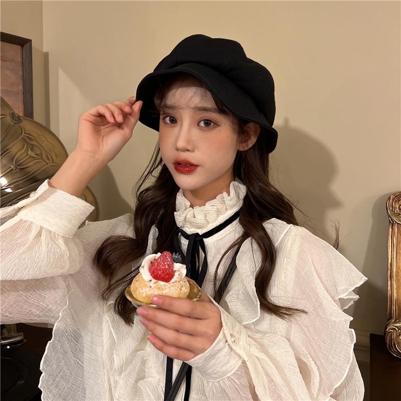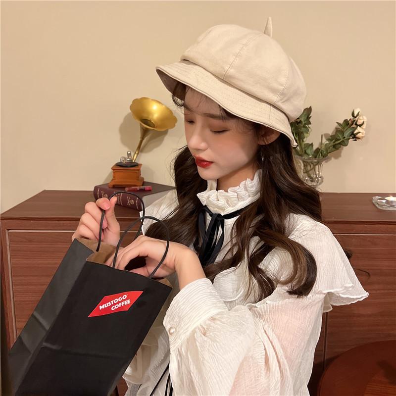Sombrero de Nube Elegante de Nicho Primavera y Otoño Estilo Japonés Sombrero Negro Oscuro Sombrero de Pescador Pequeño que Muestra el Rostro para Mujer Sombrero de Medusa Sombrero de Cubo Parasol