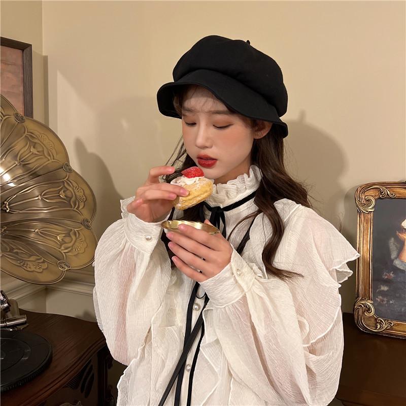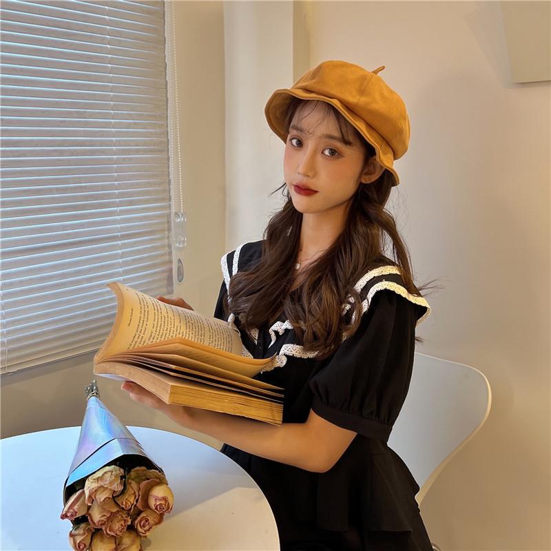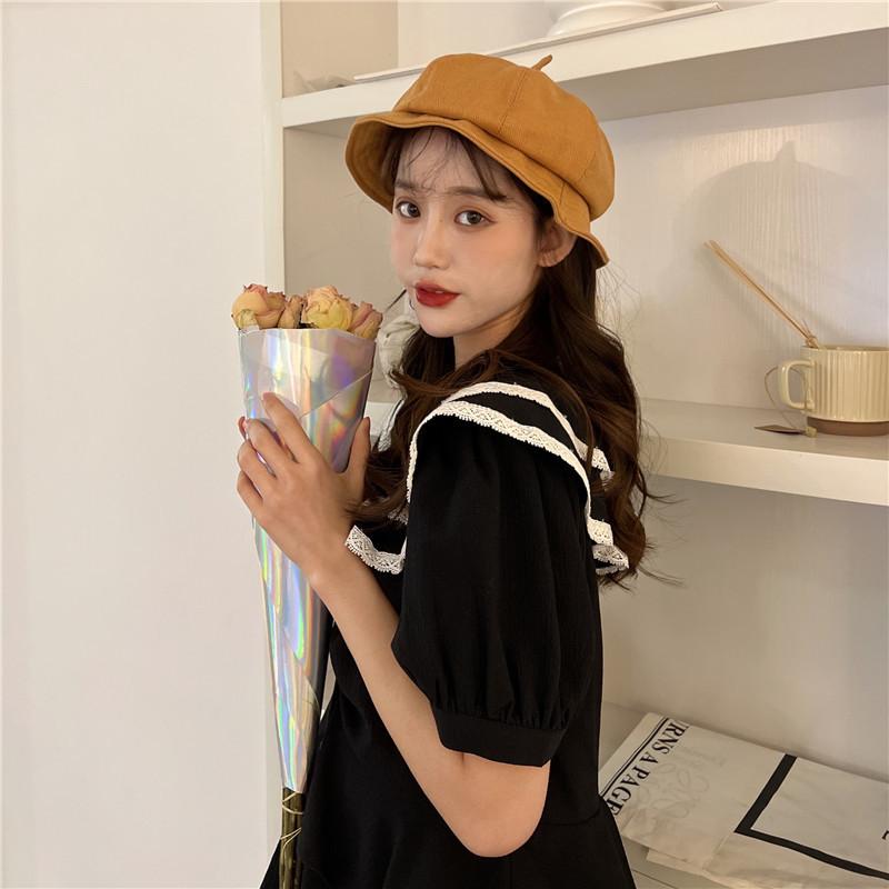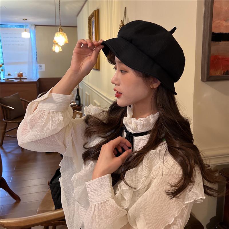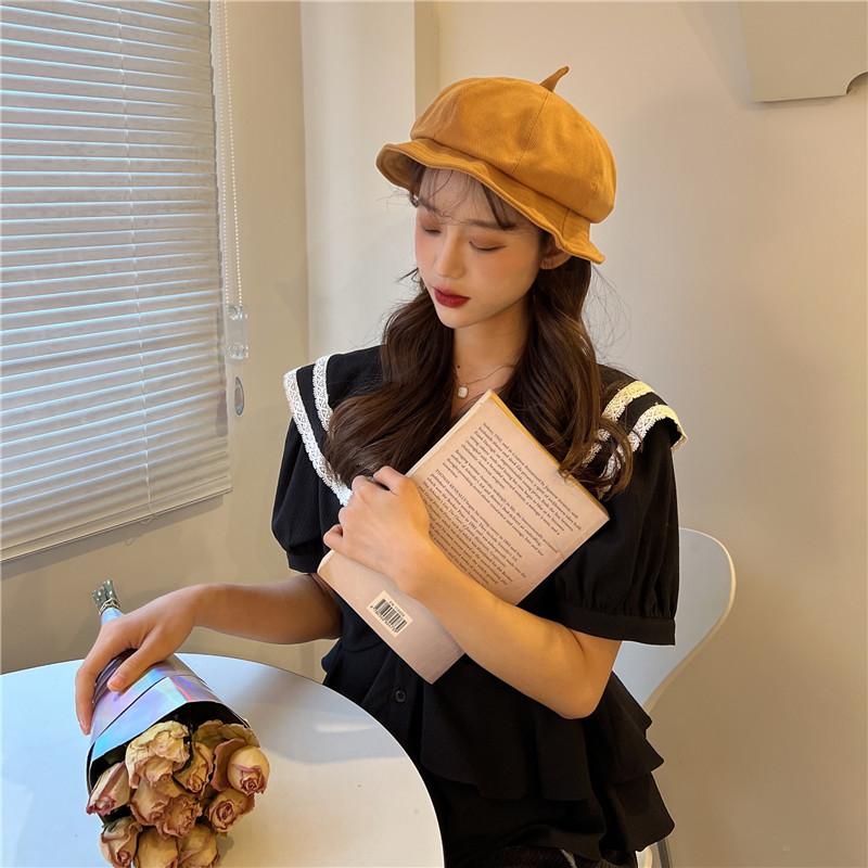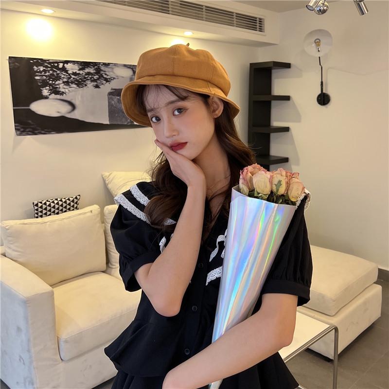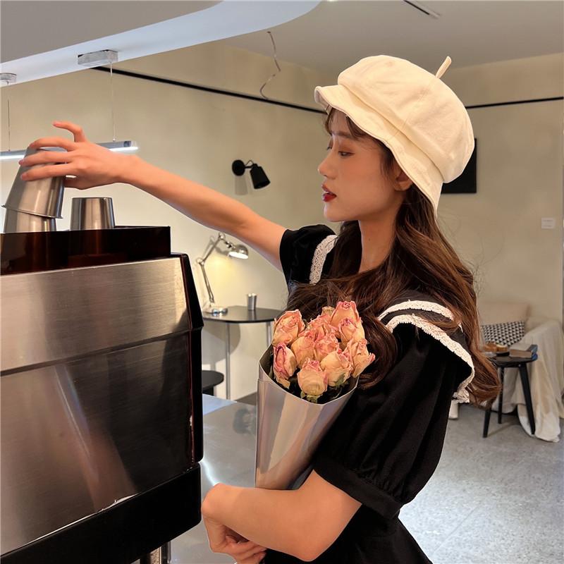 Sombrero de Nube Elegante de Nicho Primavera y Otoño Estilo Japonés Sombrero Negro Oscuro Sombrero de Pescador Pequeño que Muestra el Rostro para Mujer Sombrero de Medusa Sombrero de Cubo Parasol