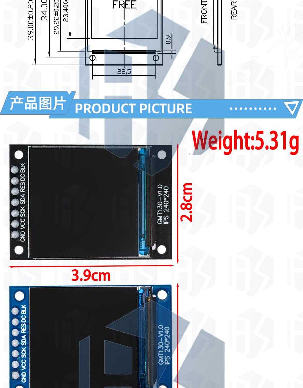Pantalla TFT IPS HD de 1.3 pulgadas Pantalla LCD OLED Controlador ST7789 Fondo Negro Fondo Azul