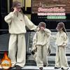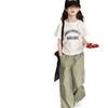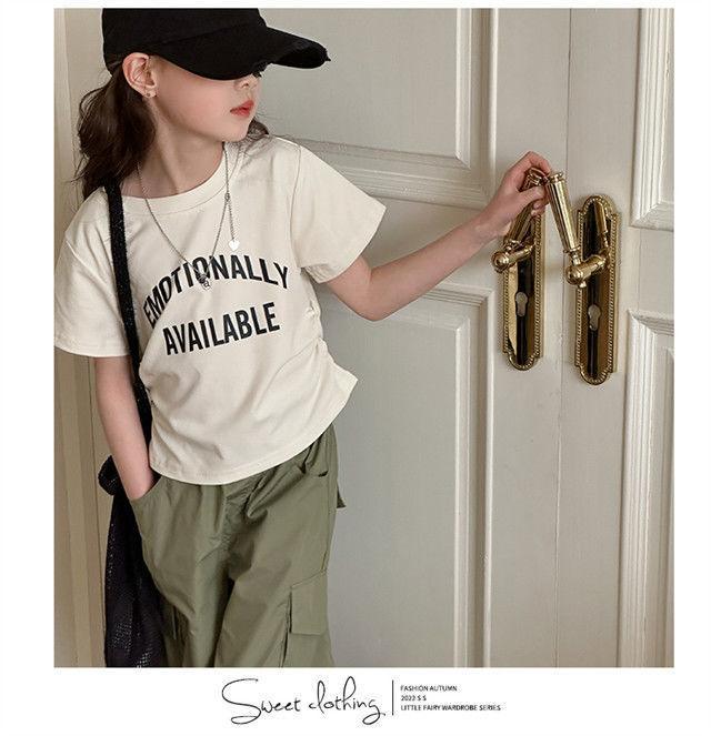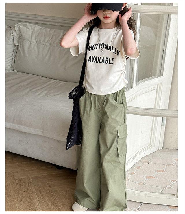 Traje de estilo coreano para niñas, conjunto de dos piezas de verano para niñas de talla mediana y grande, con letras nuevas, color sólido y pantalones a juego.