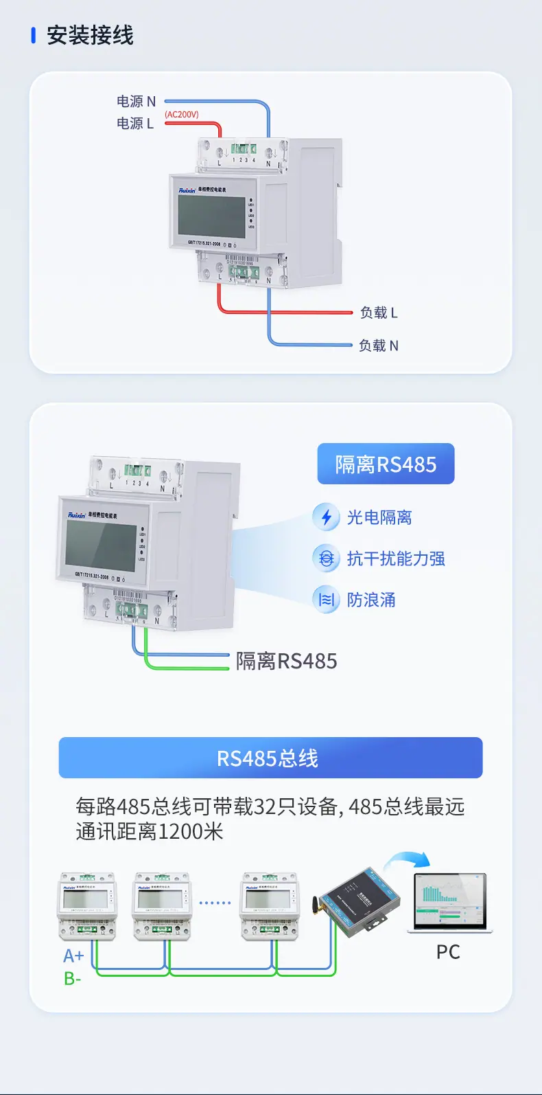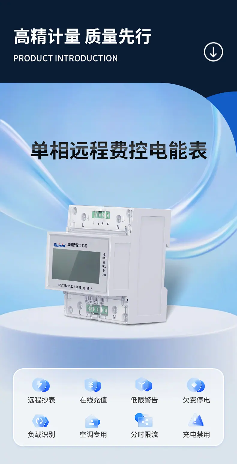 Medidor Inteligente Ruixin Monofásico 4P Medidor Montado en Riel Prepago Monitoreo de Consumo de Energía Lectura Remota de Medidor Medidor de Campus
